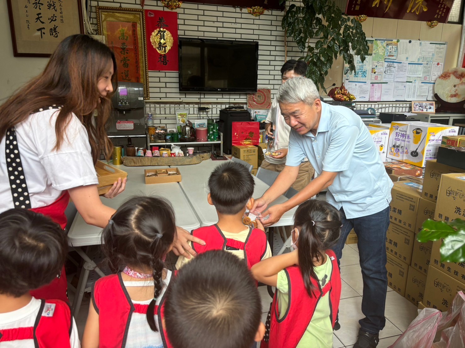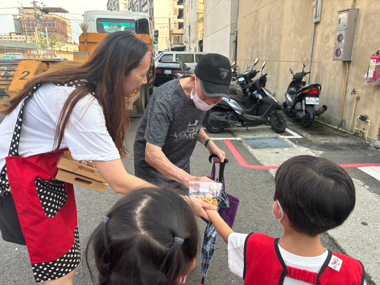 我們除了和孩子一起拜訪里長,寶貝也主動分享手中的月餅給長輩,