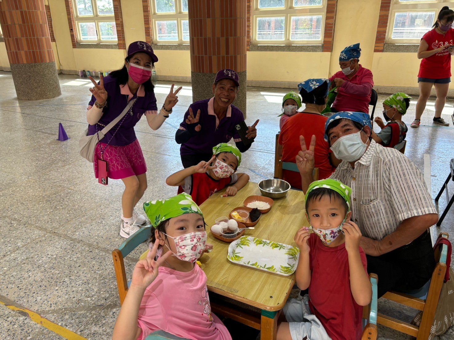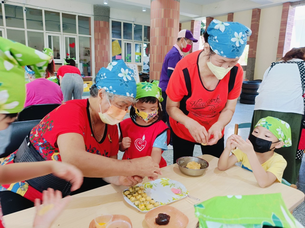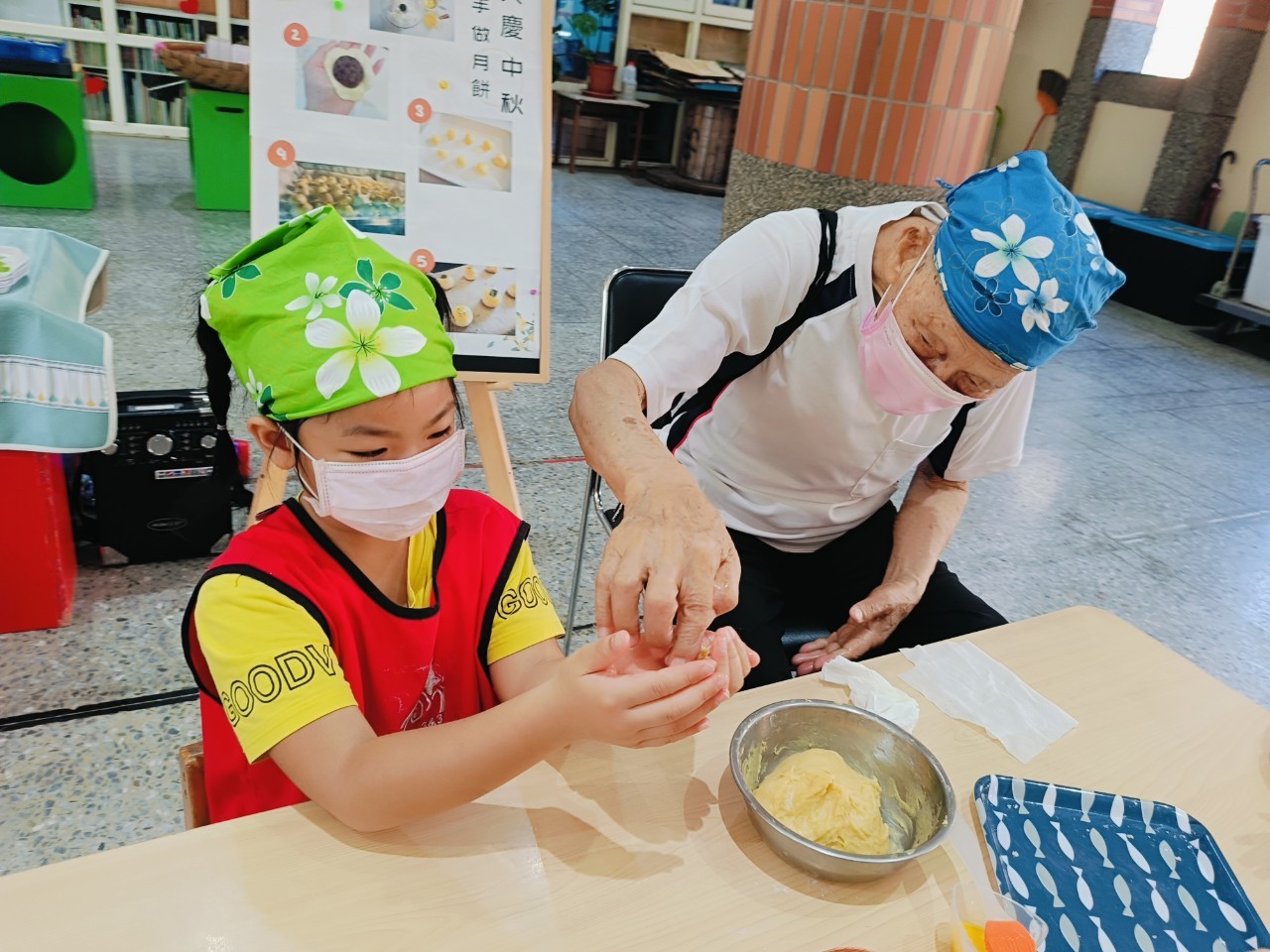 也邀請社區的長輩入園和孩子一起動手做月餅,