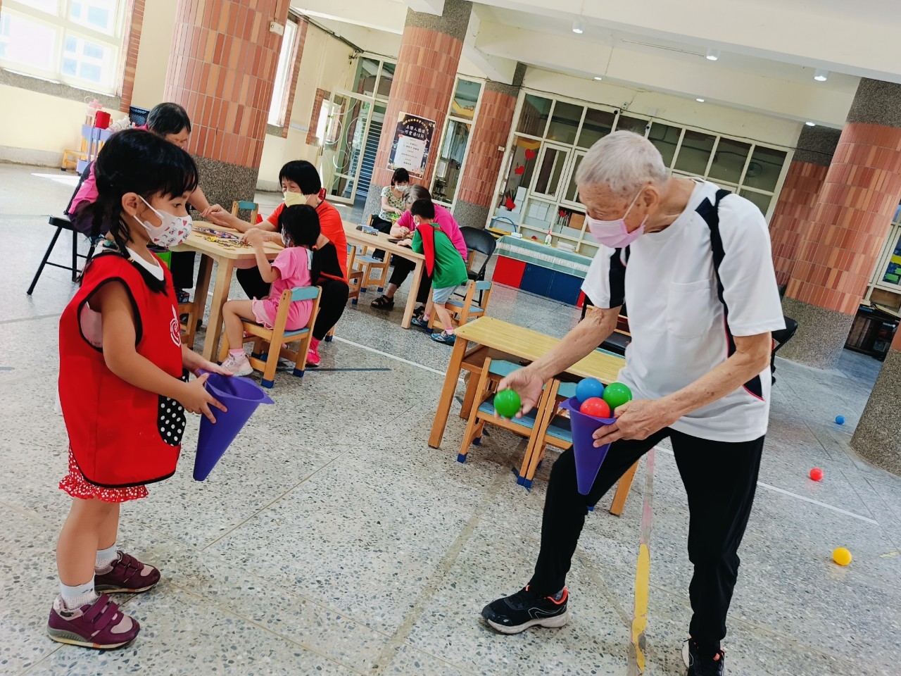 小朋友邀請長輩一起玩球類遊戲、拼拼圖,真有趣~