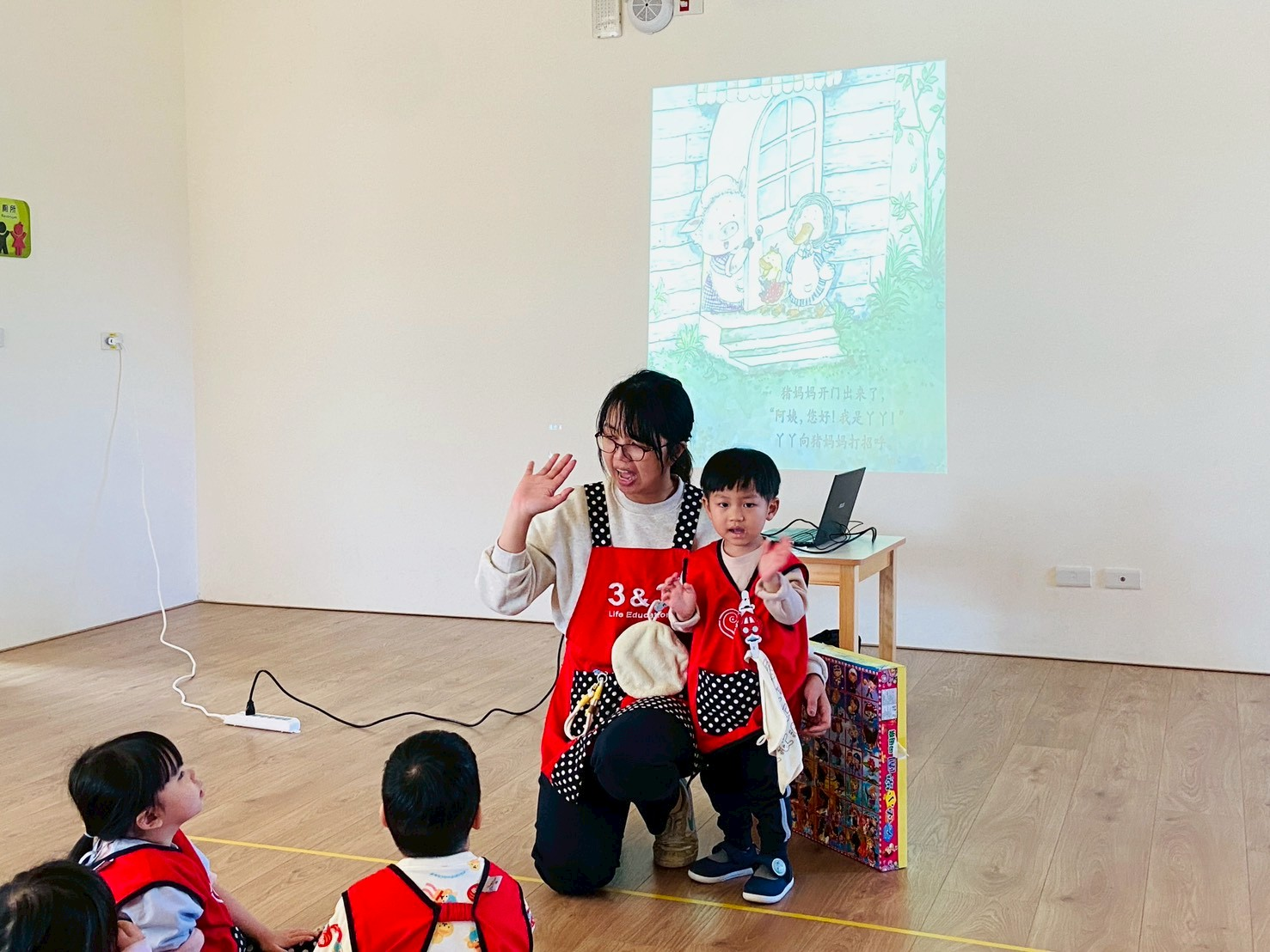 透過繪本《我會打招呼》學習如何向他人打招呼,活動中和老師、同伴一起進行情境演練,練習說「你好」、「早安」等禮貌用語。最後大家一起開心地唱《哈囉歌》,在輕鬆又熱鬧的氣氛中學習打招呼,感受互動的樂趣。