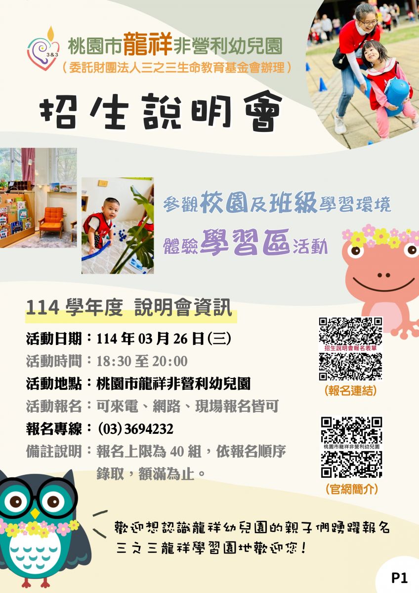 歡迎踴躍報名參加,龍祥學習園地歡迎大家的加入~