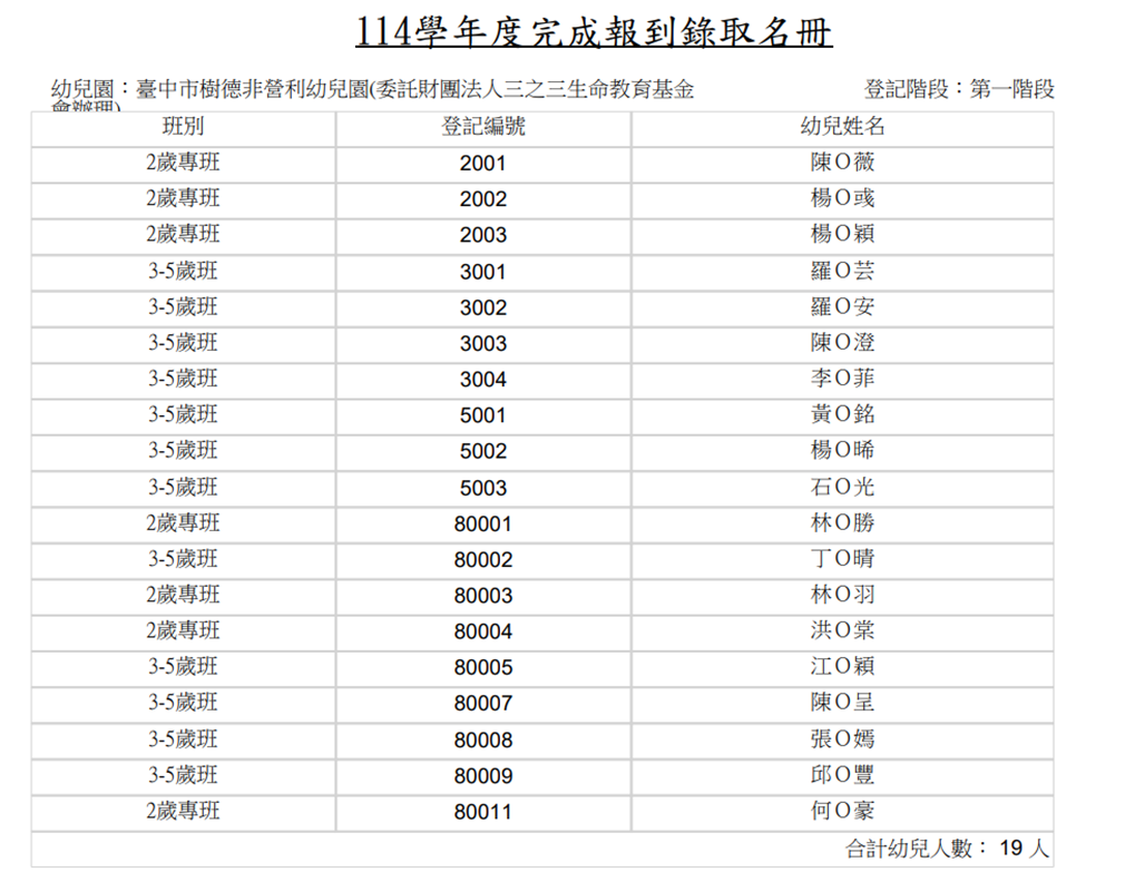114學年度樹德 第一階段完成報到錄取名冊