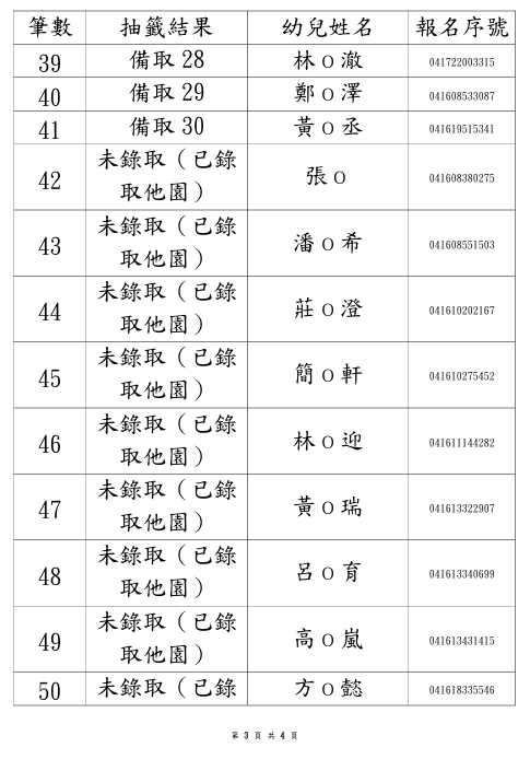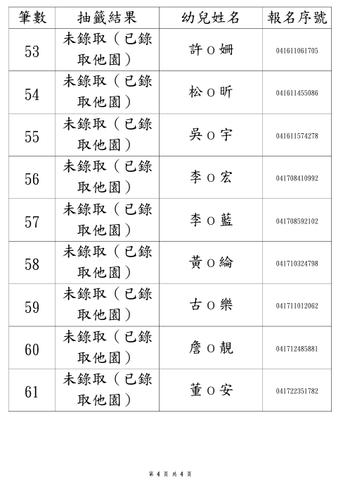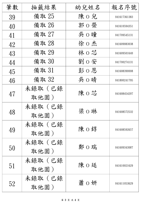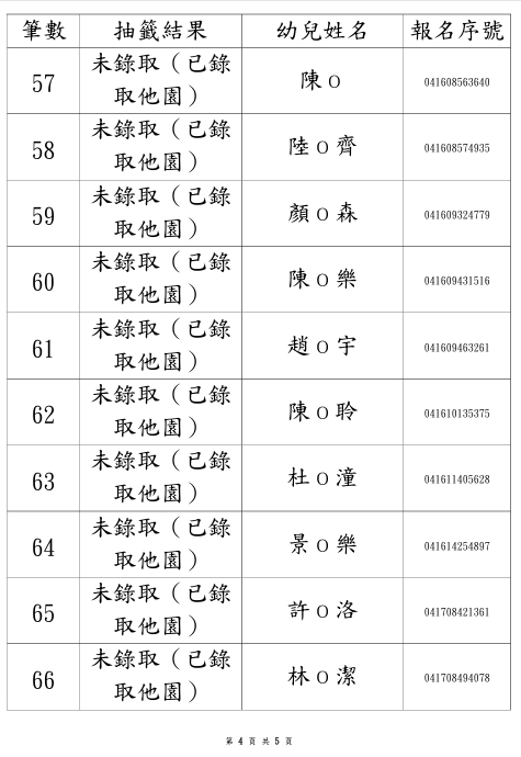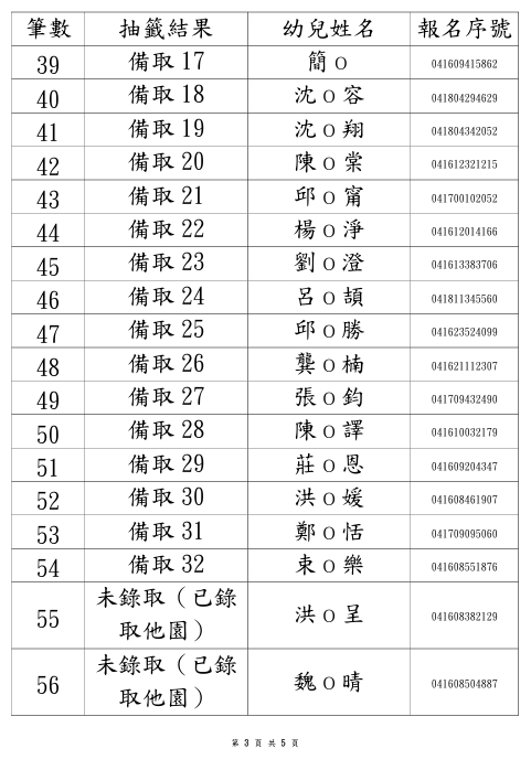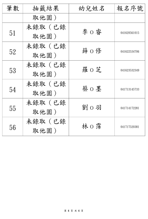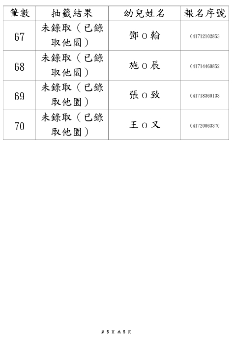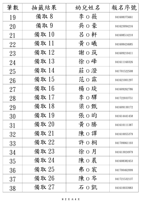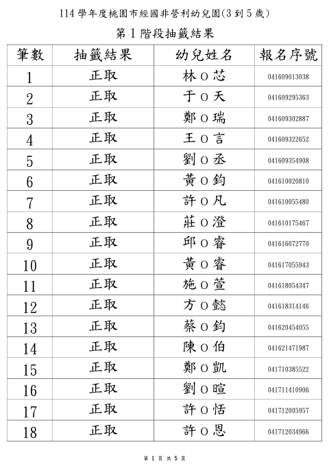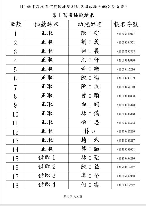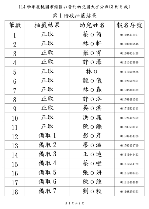114學年度永順分班第一階段招生錄取名單