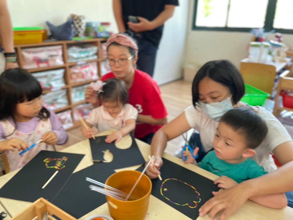 利用繪本故事引導親子利用刮畫創作小魚和媽媽魚,
