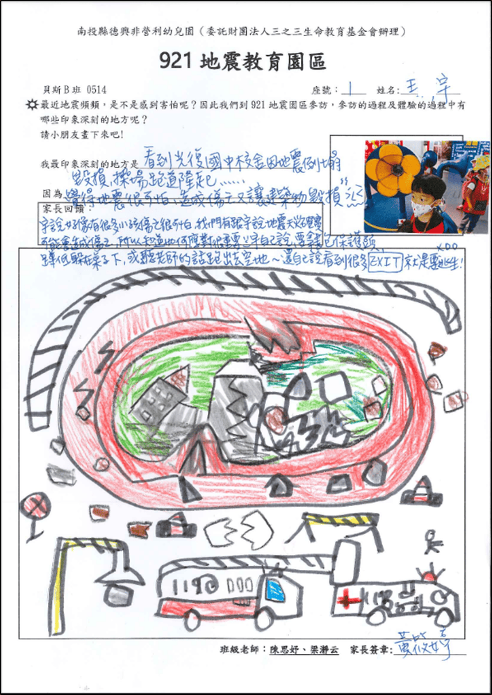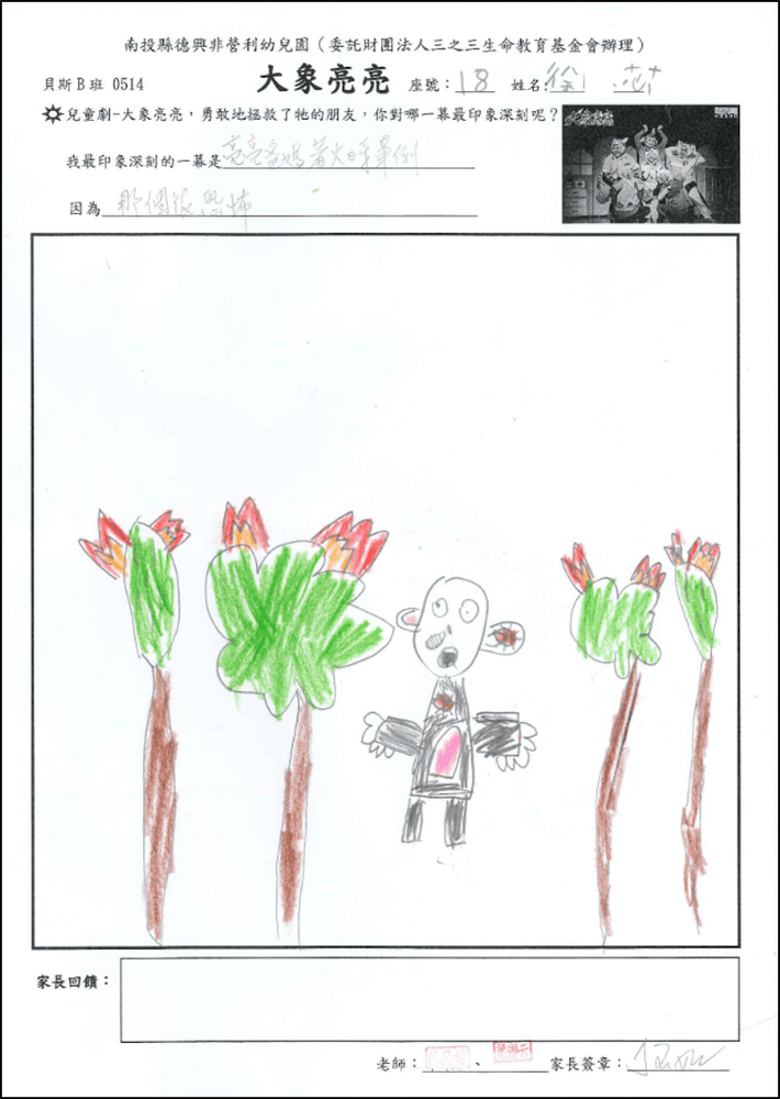 也透過學習單穰孩子紀錄自己印象深刻的事情。