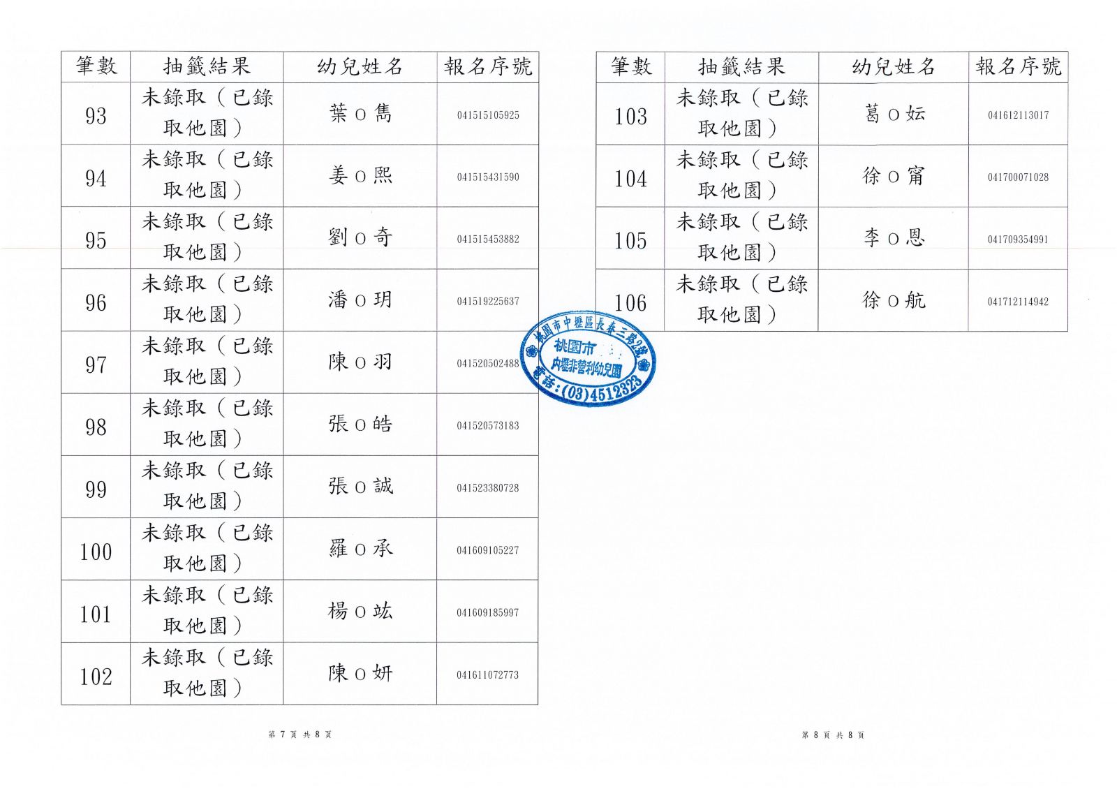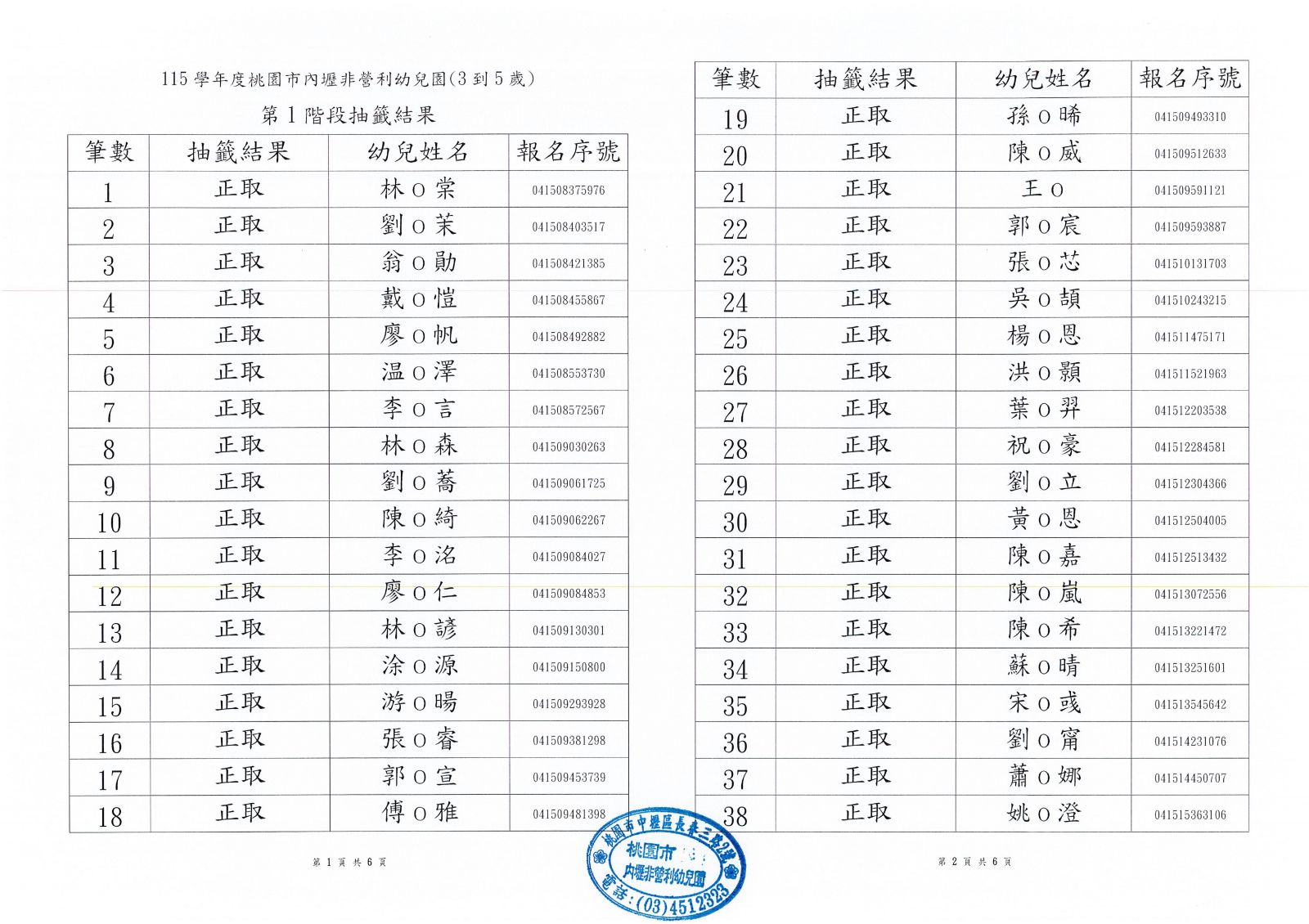 ◆兩歲專班第一階段錄取公告