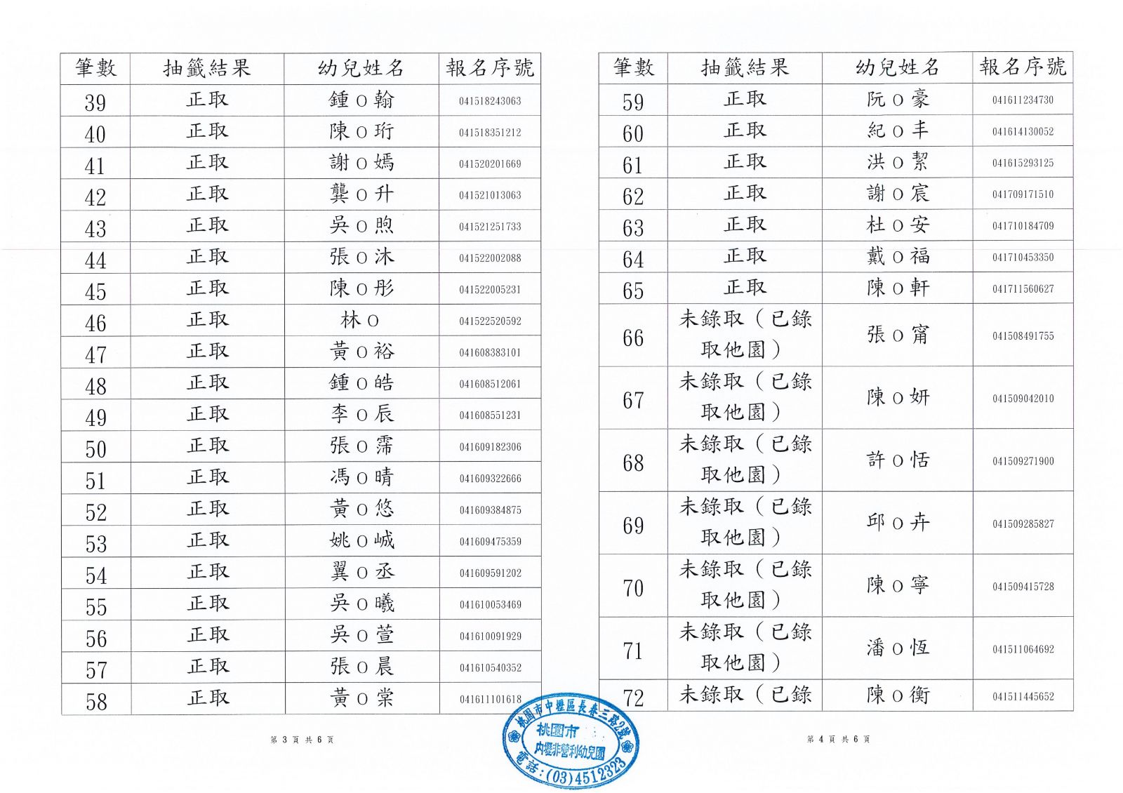◆3-5歲專班第一階段錄取公告