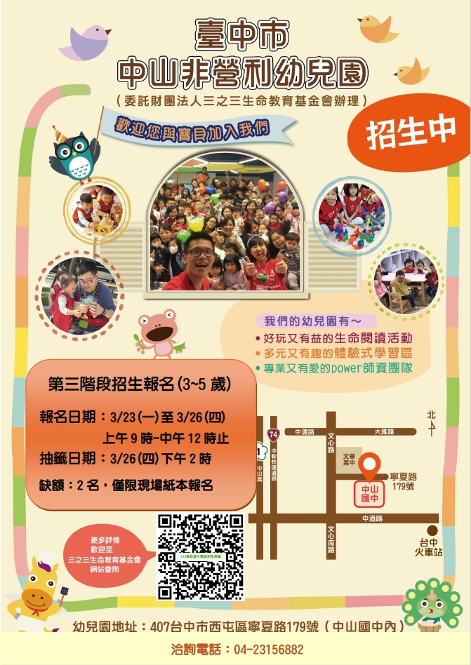 臺中市中山非營利幼兒園(委託財團法人三之三生命教育基金會)