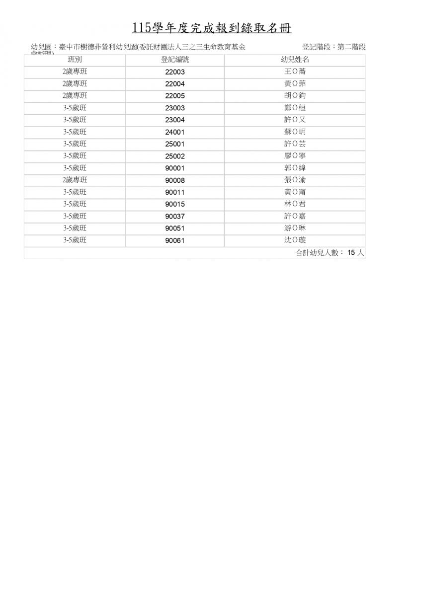 115學年度樹德 第二階段完成報到錄取名冊