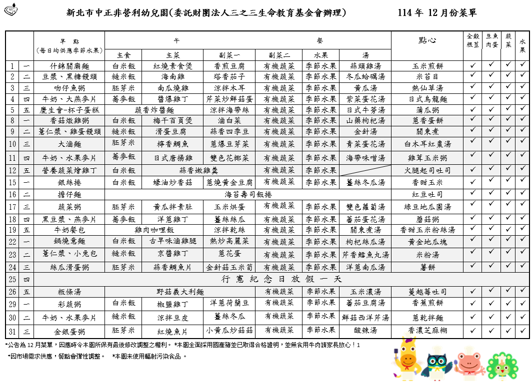 114年12月菜單