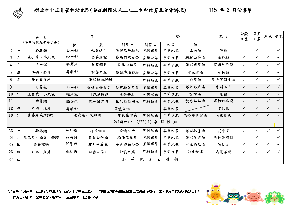 115年02月菜單