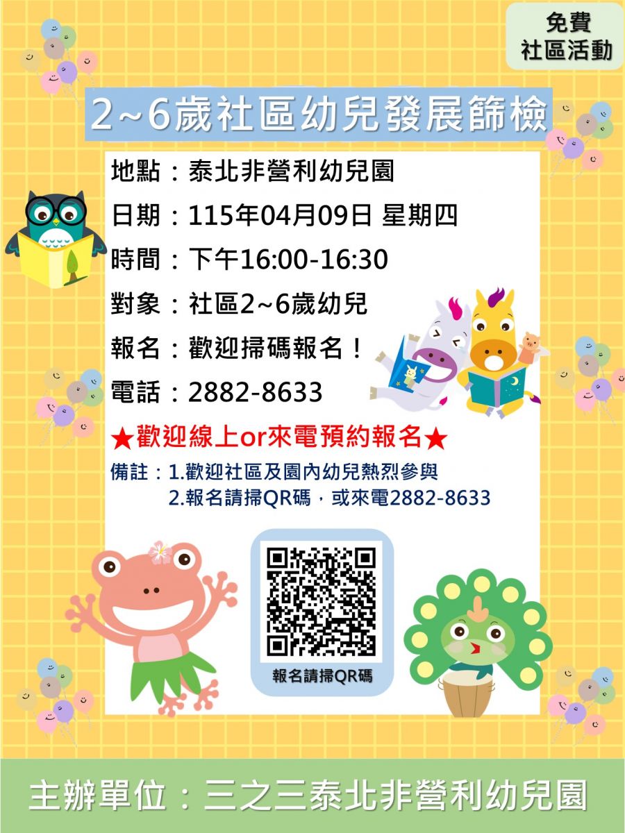 4/09 (三) 社區親職活動▶免費幼兒發展篩檢闖關活動