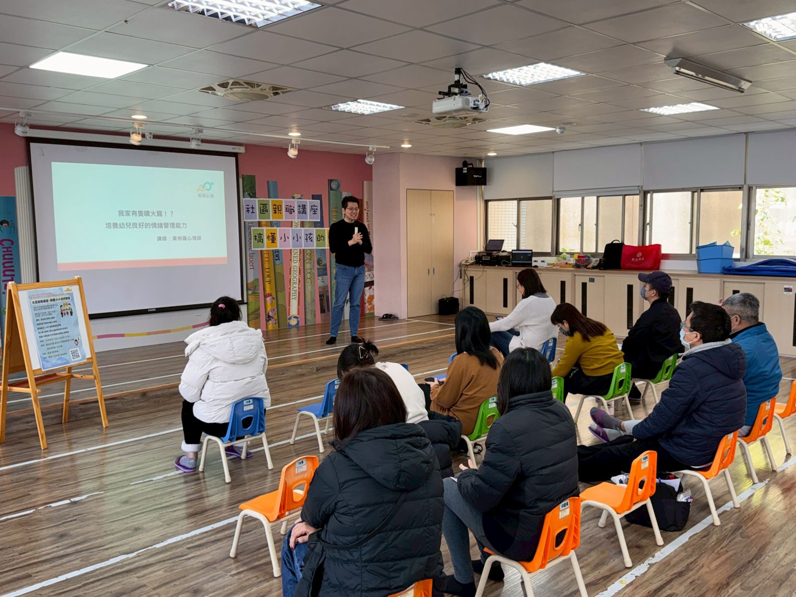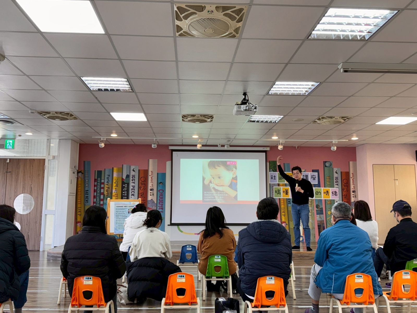 親職講座於家長簽到入座後正式展開,由黃柏嘉心理諮商室講師帶領,主題為「搞懂小小孩的情緒」。講師從情緒本質談起,說明情緒沒有對錯,重點在於理解與回應。透過實例分享,引導家長學習傾聽孩子需求、以穩定情緒陪伴孩子成長,並運用語言引導孩子表達感受,建立安全感與良好的情緒管理能力,促進親子關係更加穩定與正向。