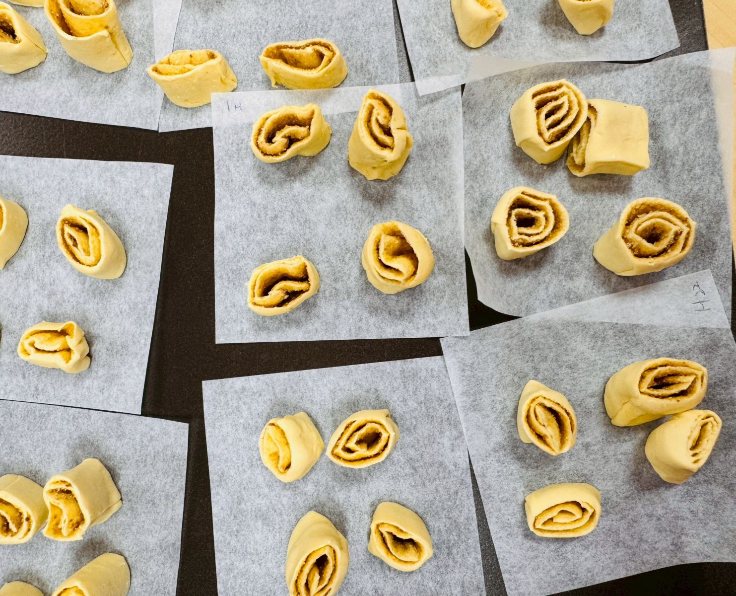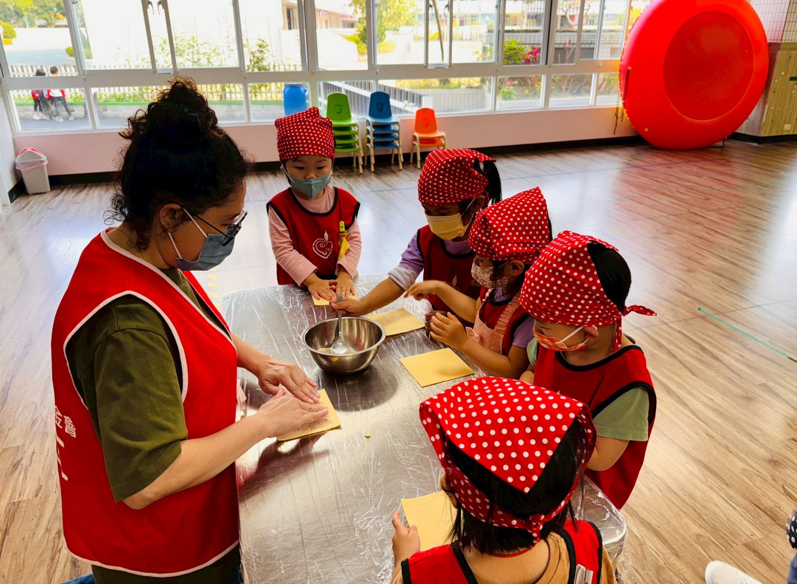 活動紀錄:孩子們期待已久的烘焙時光熱鬧展開!本次製作甜蜜蜜捲捲酥,由小歐老師示範並介紹黑糖、砂糖與酥皮等材料。在志工家長的協助,孩子們動手攪拌、舖抹與捲製,體驗料理的樂趣。經烘烤後,香氣四溢的酥脆餅乾完成,孩子們不僅品嚐美味,也將成品帶回與家人分享,留下幸福回憶。