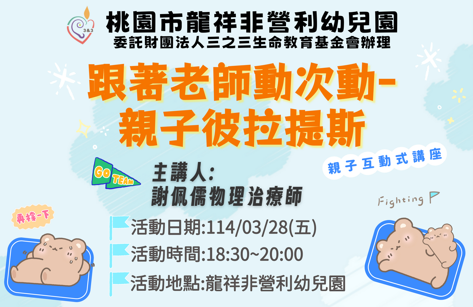 社區親子互動式講座:跟著老師動次動,親子皮拉提斯114.03.28