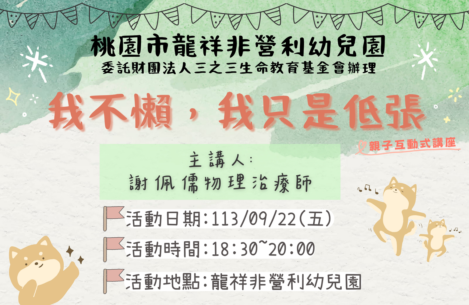 社區親子互動式講座:我不懶,我只是低張113.09.22