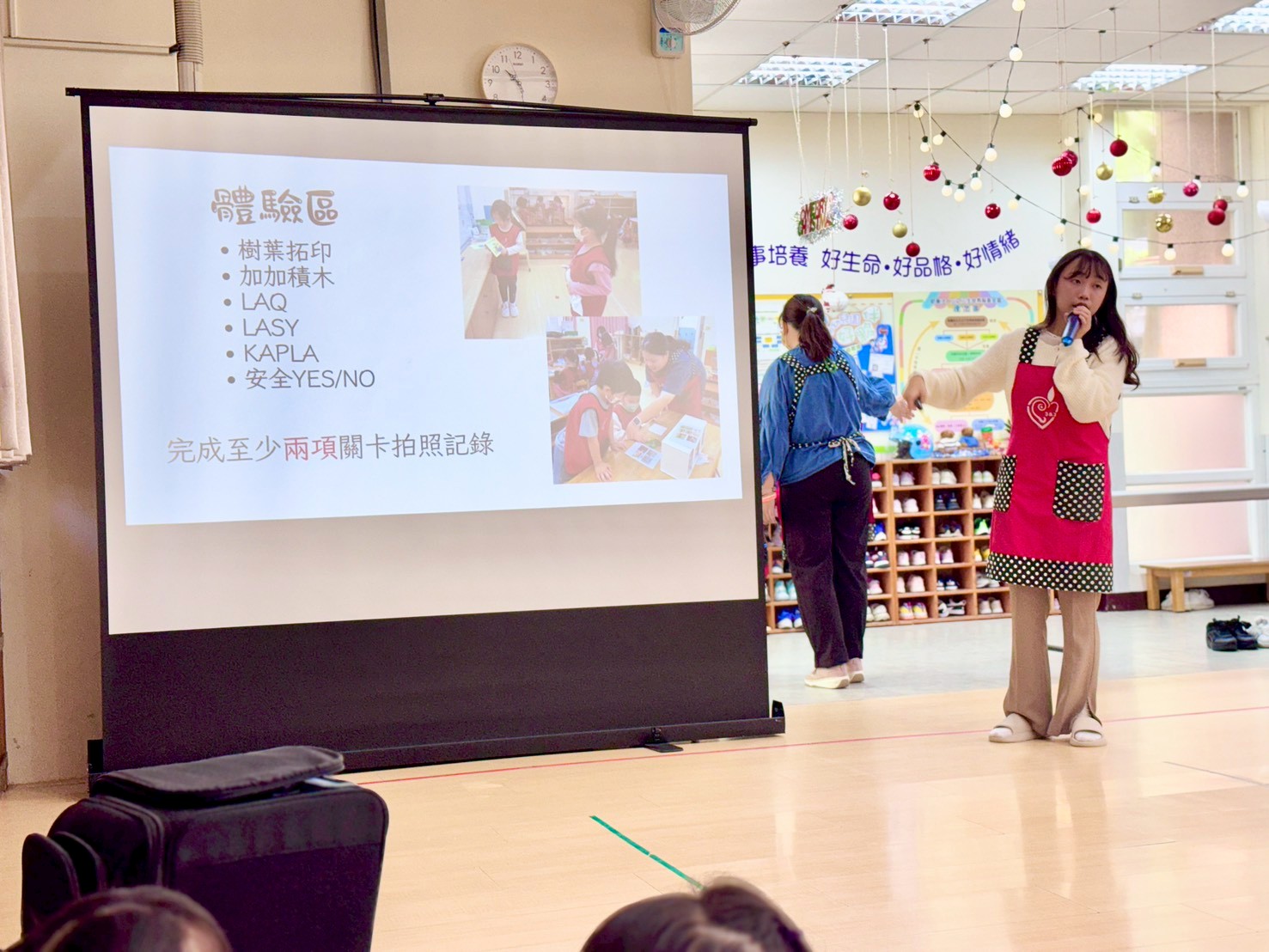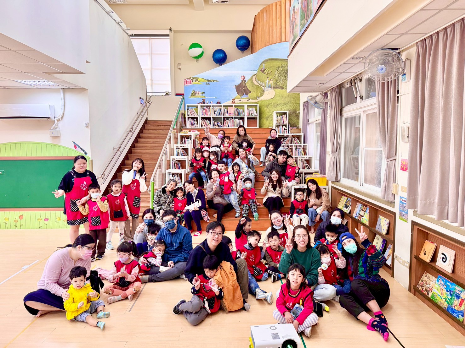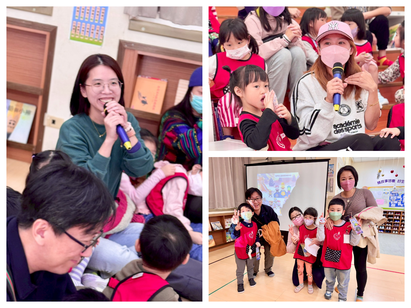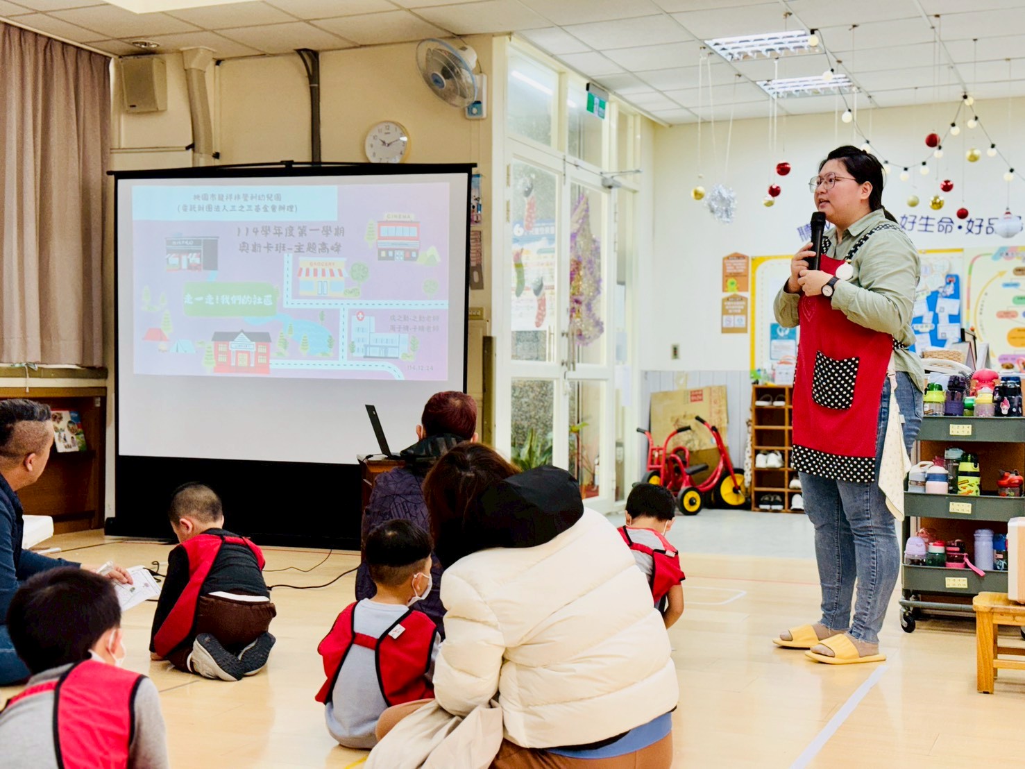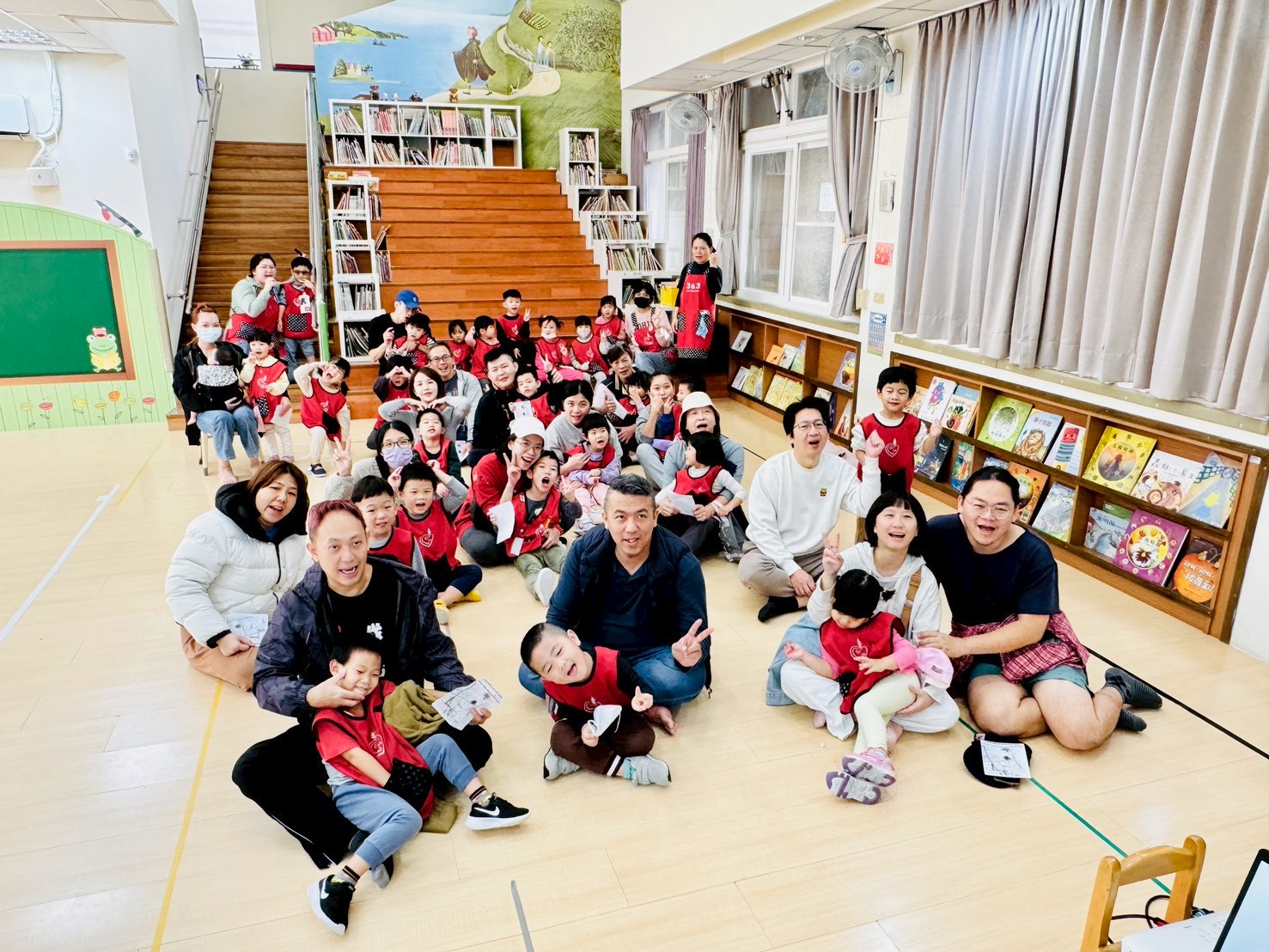 老師將孩子們與社區公園之間的生活經驗,彙整成一個完整的故事後,透過戲劇與繪本的方式,具體和家人們分享獨屬於孩子們的故事【走呀走!去公園和埤塘】,進而瞭解本學期主題課程的學習成果。