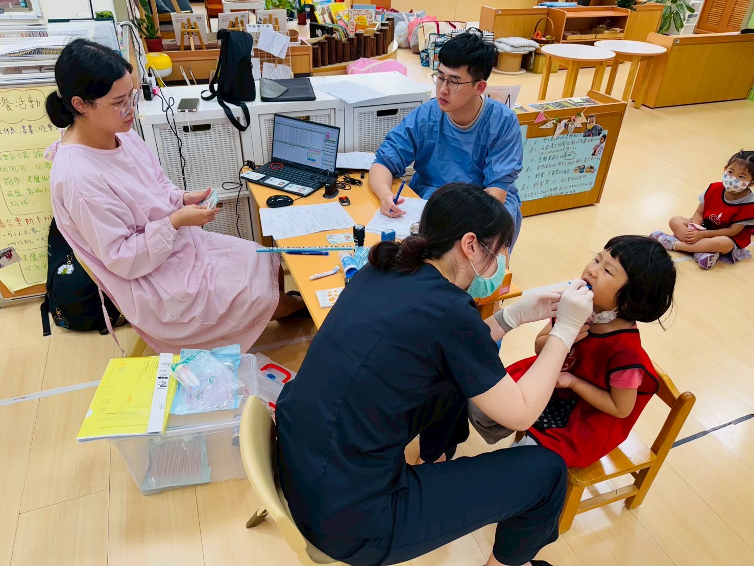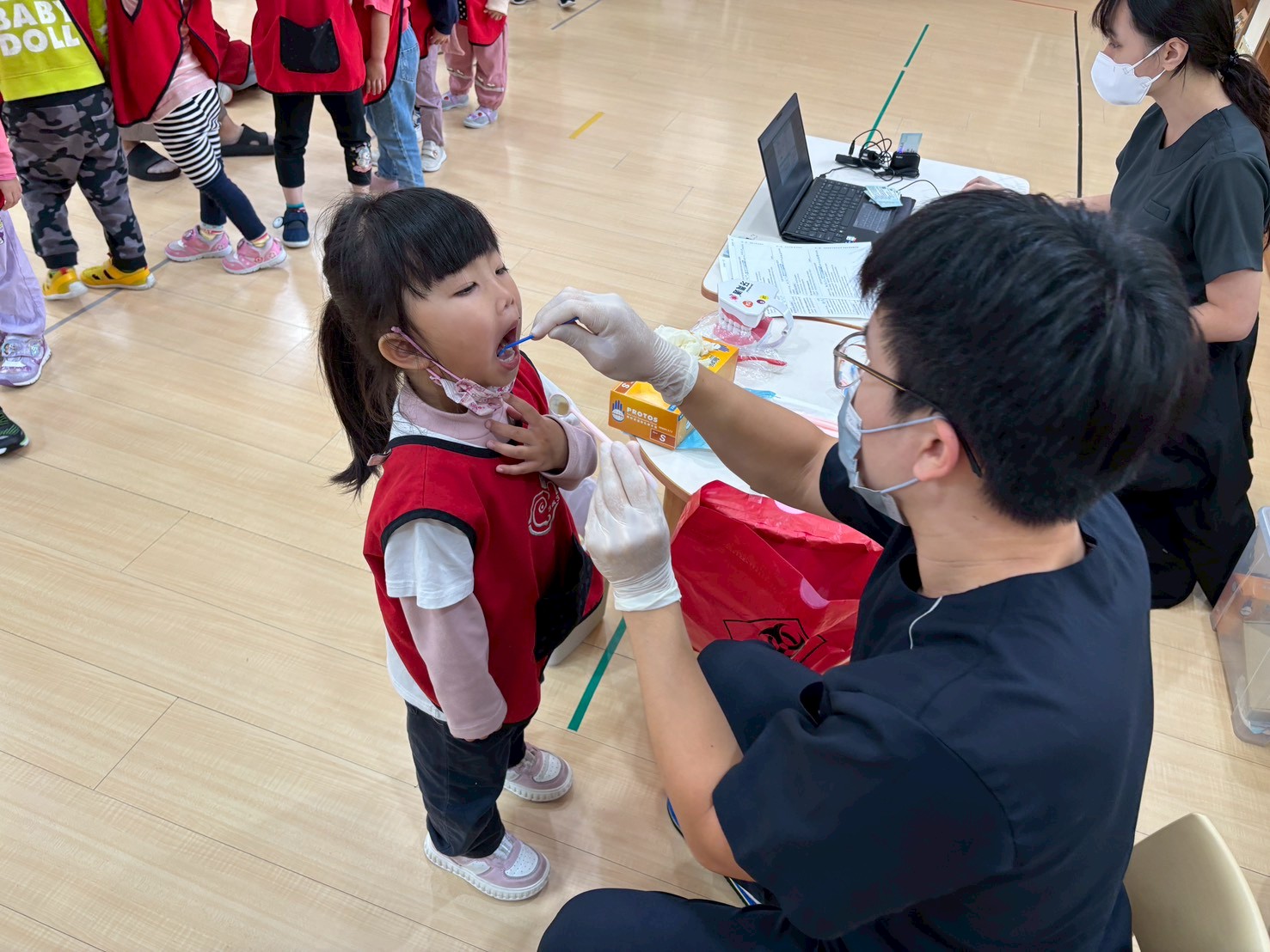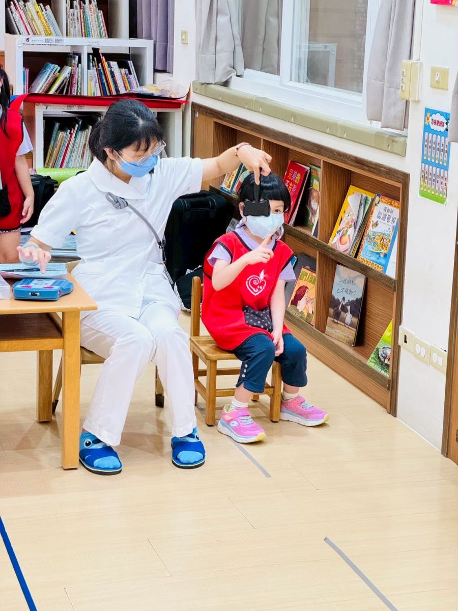 本次健檢與衛生所配合施作愛兒健康檢查活動,檢查的內容包含:口腔、視力及聽力等基本檢查。