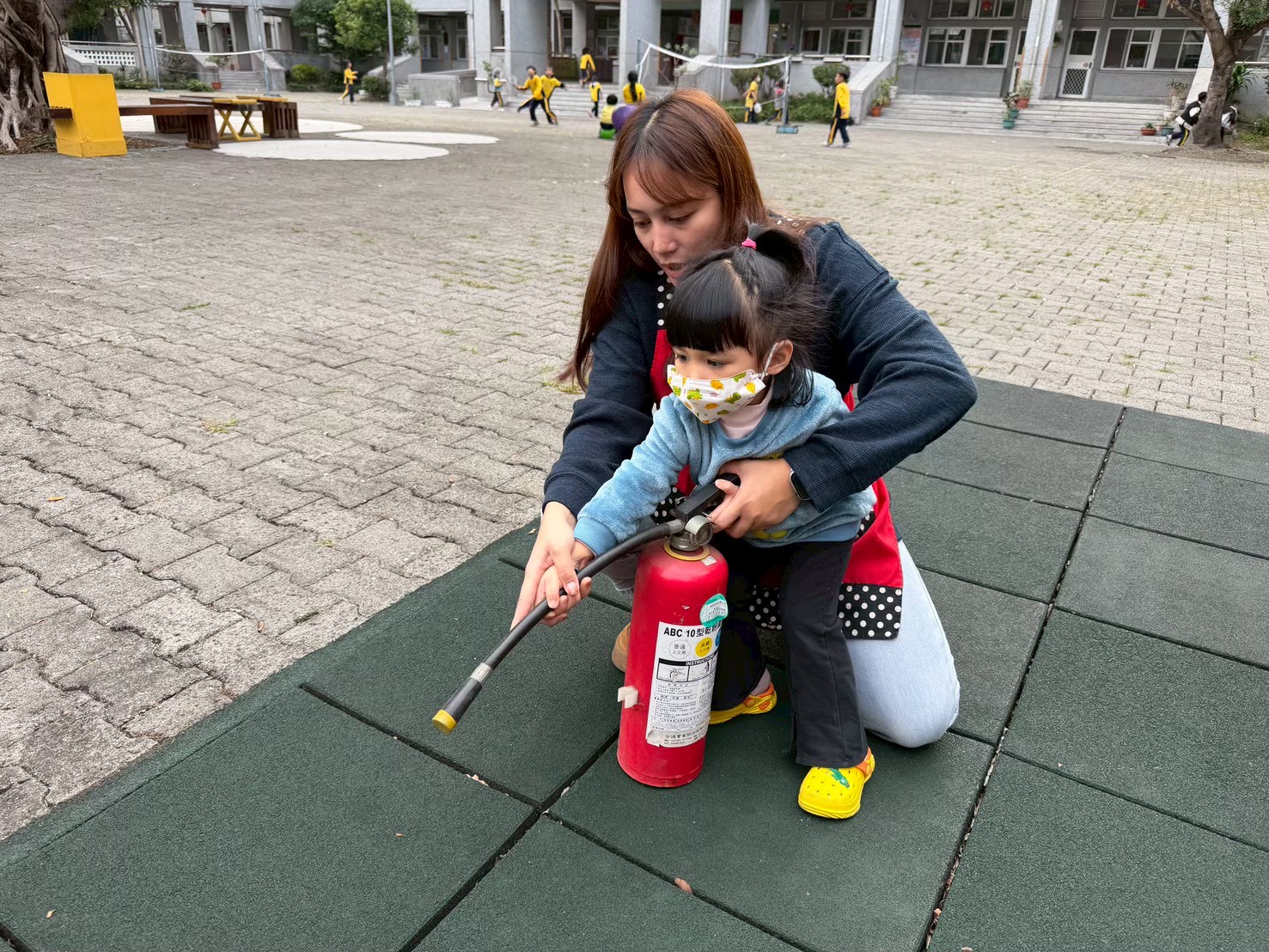 火災發生時,採低姿態逃生,透過宣導,讓幼兒知悉災害的危險性與恐怖,並對火源、電器、戲水等災害預防有初步的認識。