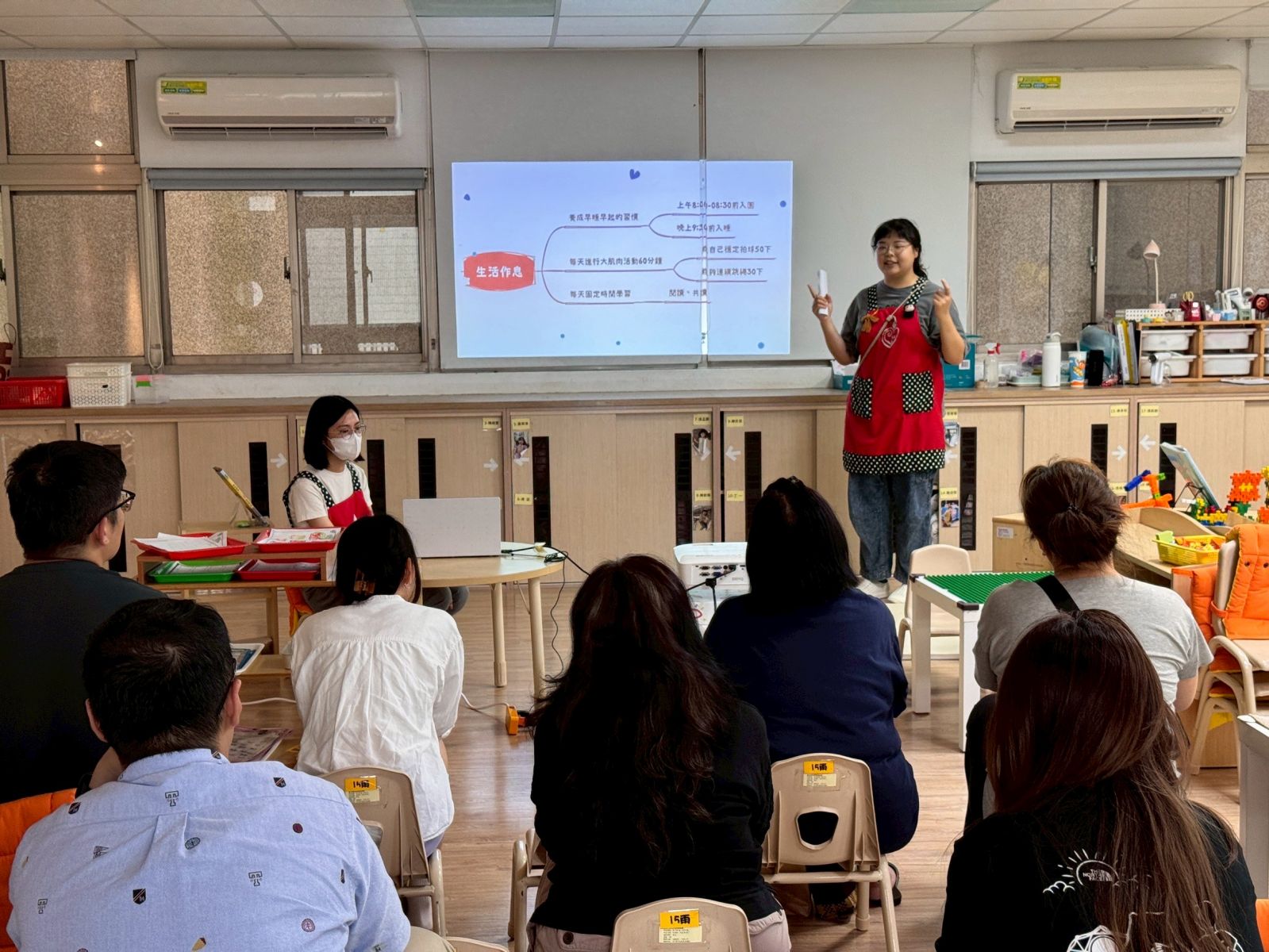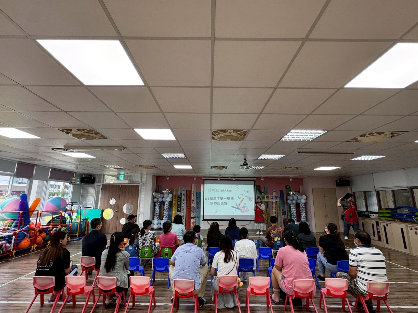 活動中,園長首先向家長們說明校務與相關配合事項,讓家長更了解學校的方向與理念。接著,各班老師分享了本學期的課程亮點、學習目標與活動預告,帶著家長「走進教室」,了解每個學習區的用心設計。