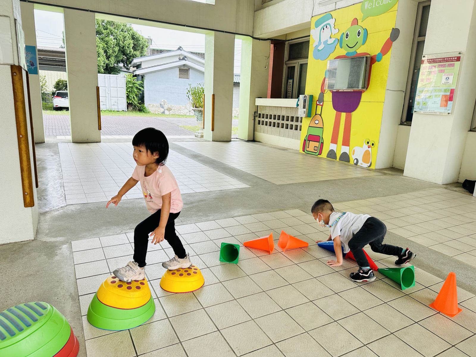 .蟲蟲危機:使用河石、感覺統合器材來變化不同的路徑,培養孩子的專注力及增加反應力。