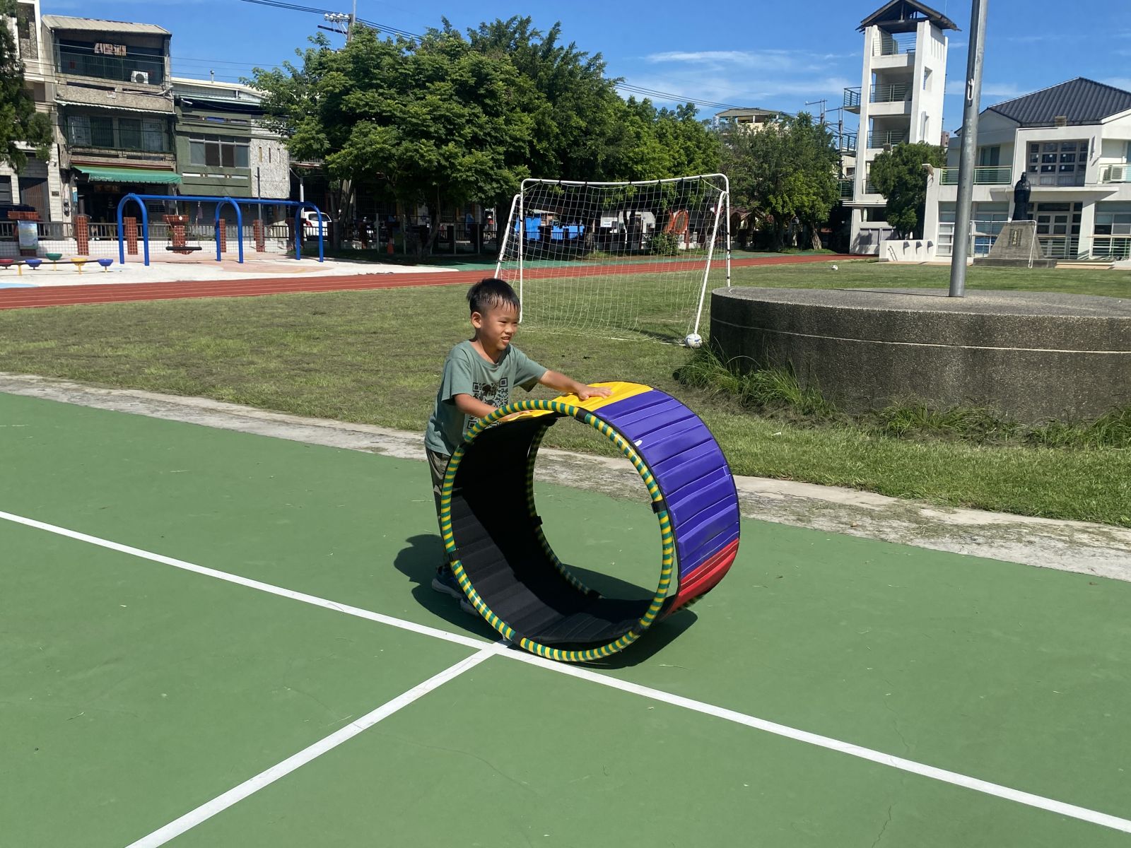 .輪胎滾滾滾:踩輪胎保持平衡。