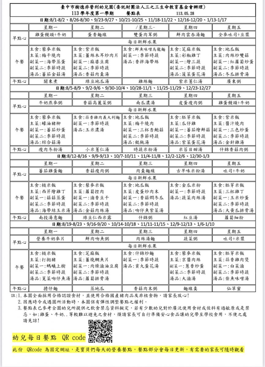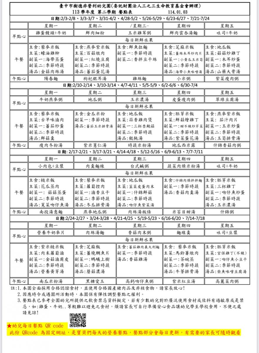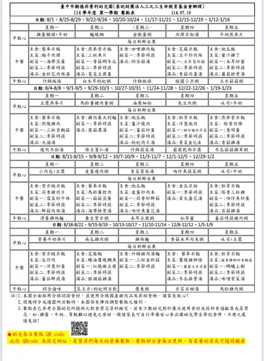 114學年 上學期 餐點表 (114.10.23因應非洲豬瘟修改餐點表,此餐點表至