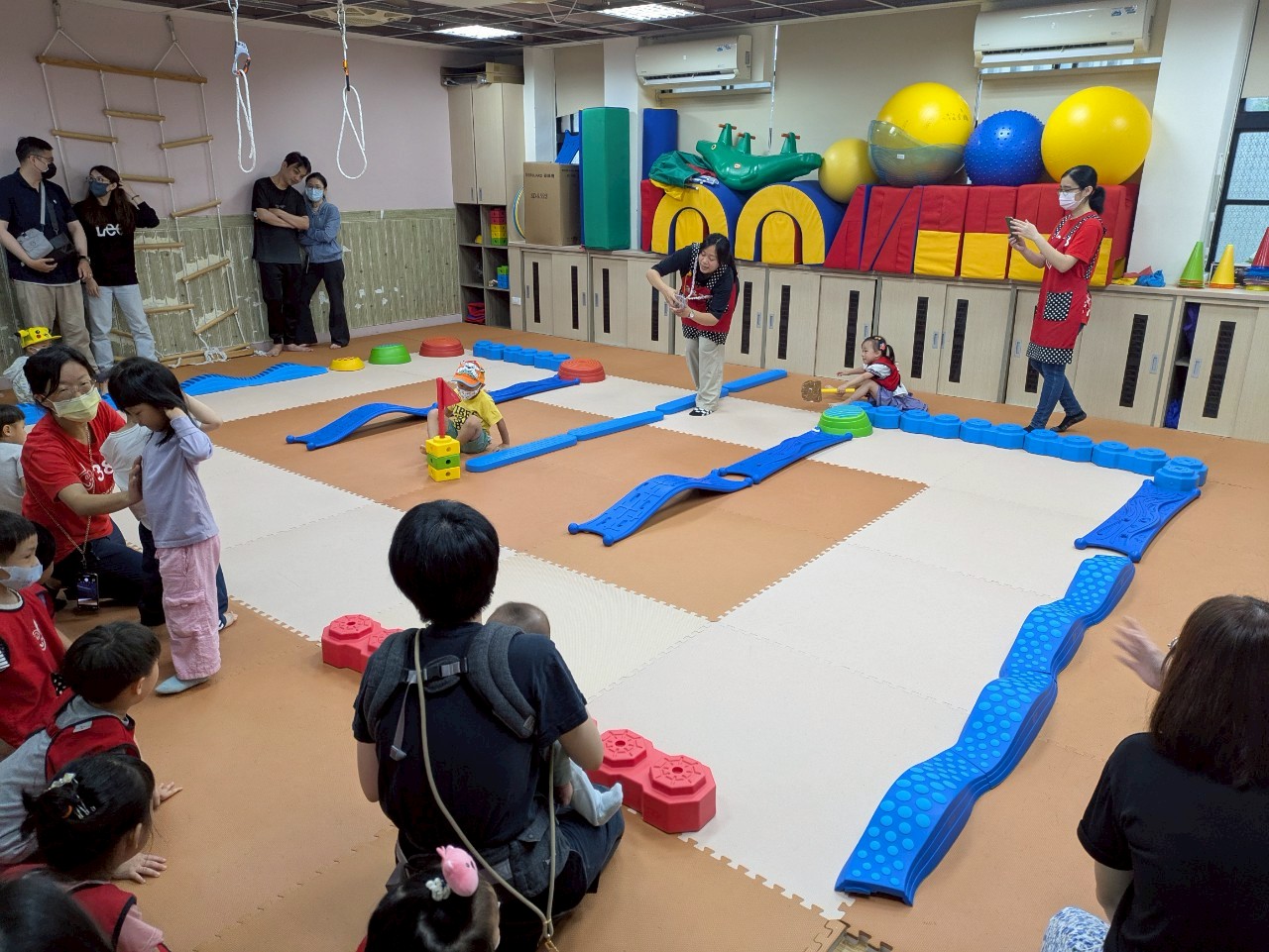 這次的高峰活動結合主題我長大了,除了親子同樂之外,還給於了孩子生活自理的小任務,我會排隊、我會揹水壺、我會自己揹書包,在過程中,孩子都可以完成小任務,表現超棒呢!