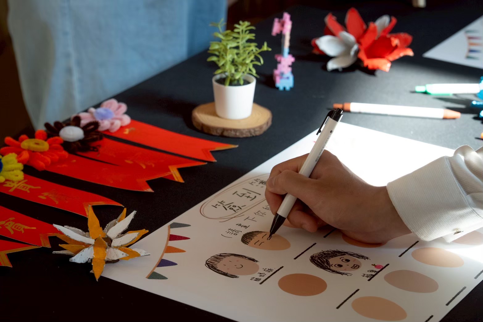 邀請家長一同與孩子們到校除了認識新學期的活動及教室環境外,也和孩子一起手作燈籠並畫下自己對於新學期的祝福來慶祝元宵節。