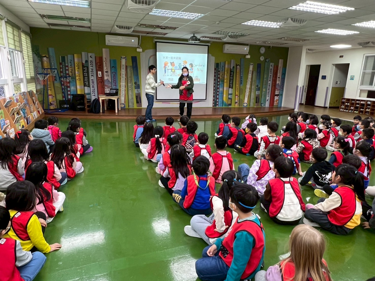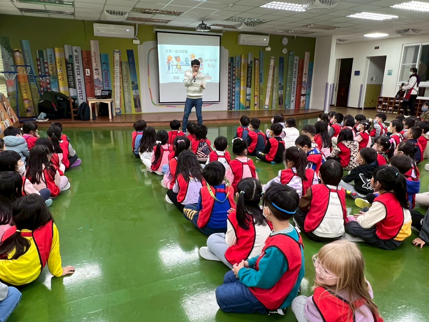 中華民國腦性麻痺協會教育委員會入園,進行【115年用愛化礙無距離】宣導,陳品翰講師運用小影片和孩子們分享,遇到困難時我會尋求協助、找到自己的專長,並且耐心等待、陪伴需要幫助的同儕,看見每一個生命的美好!