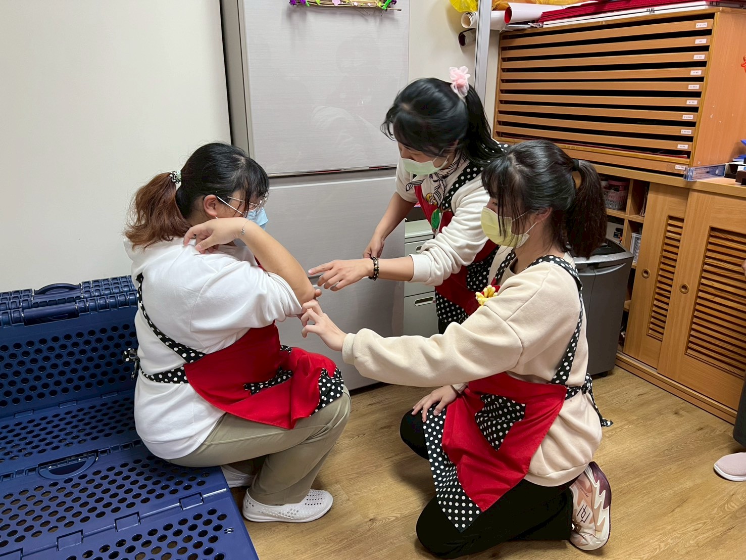 2.行政人員評估,進行止血動作並用紗布加壓