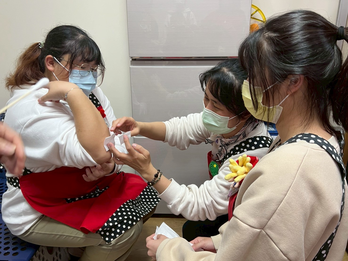 2.老師檢視幼生流鼻血的狀況