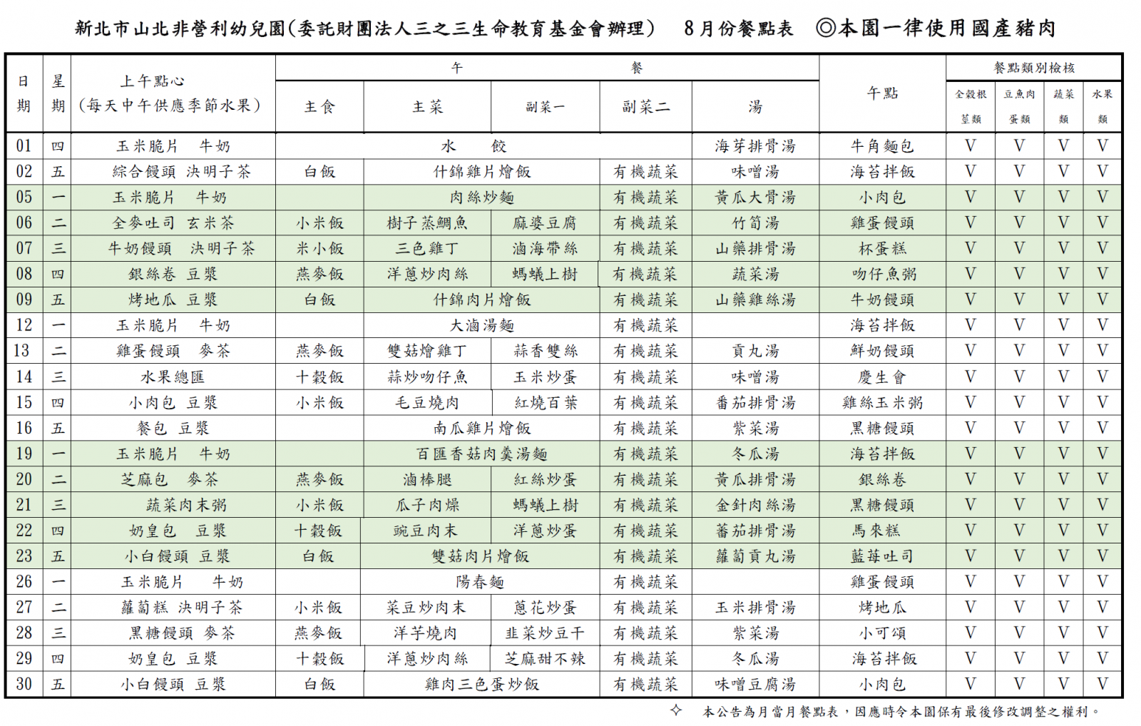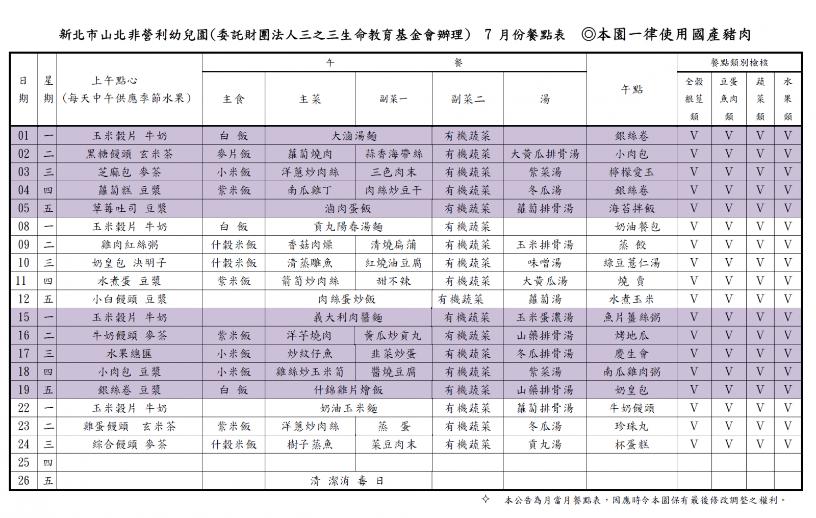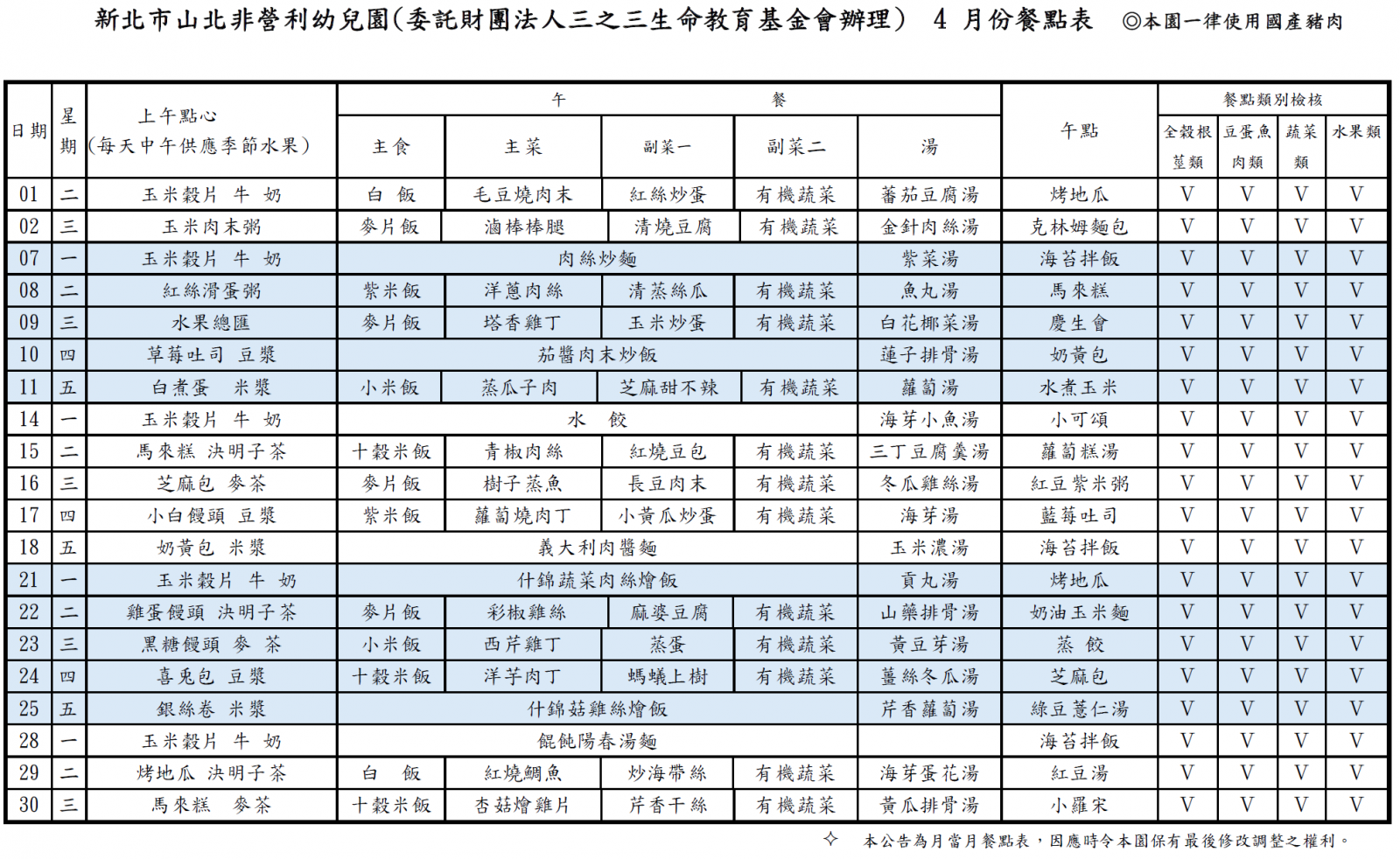 每月餐點表