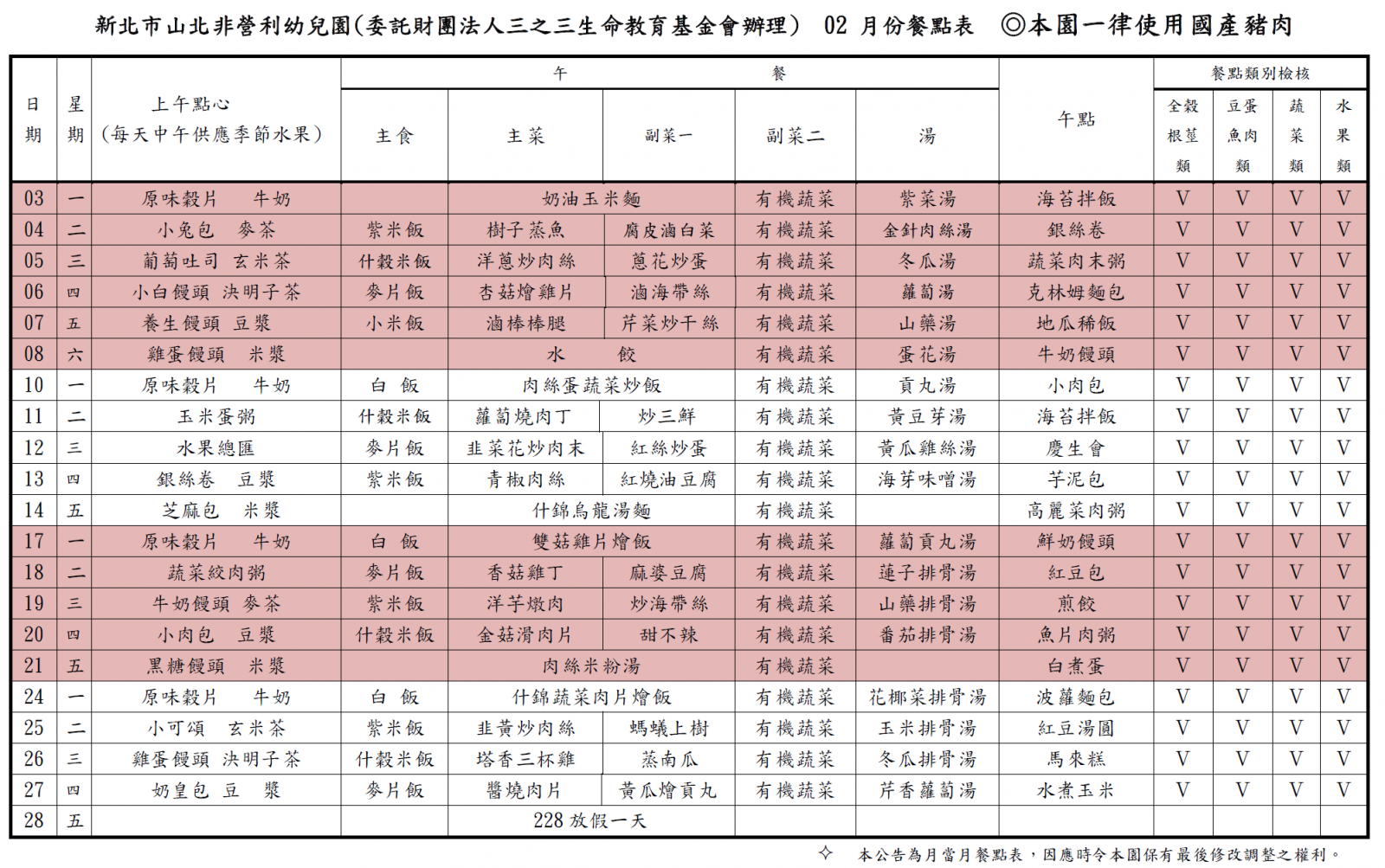112學年度第二學期 二月份菜單