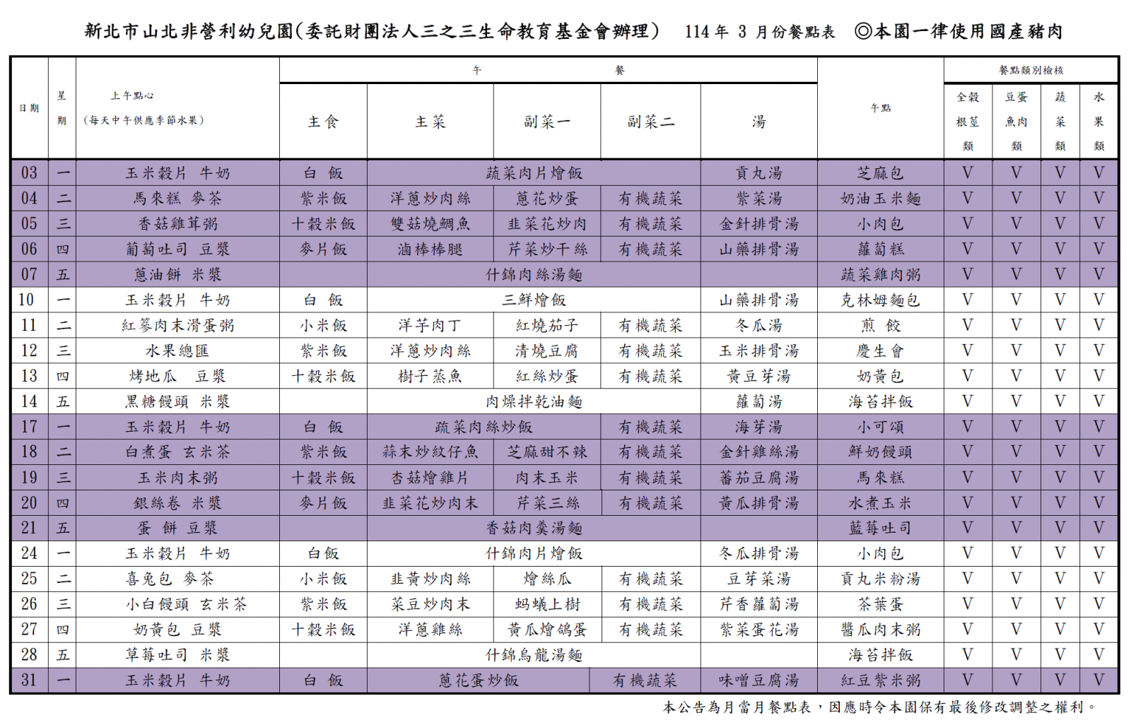112學年度第二學期 三月份菜單