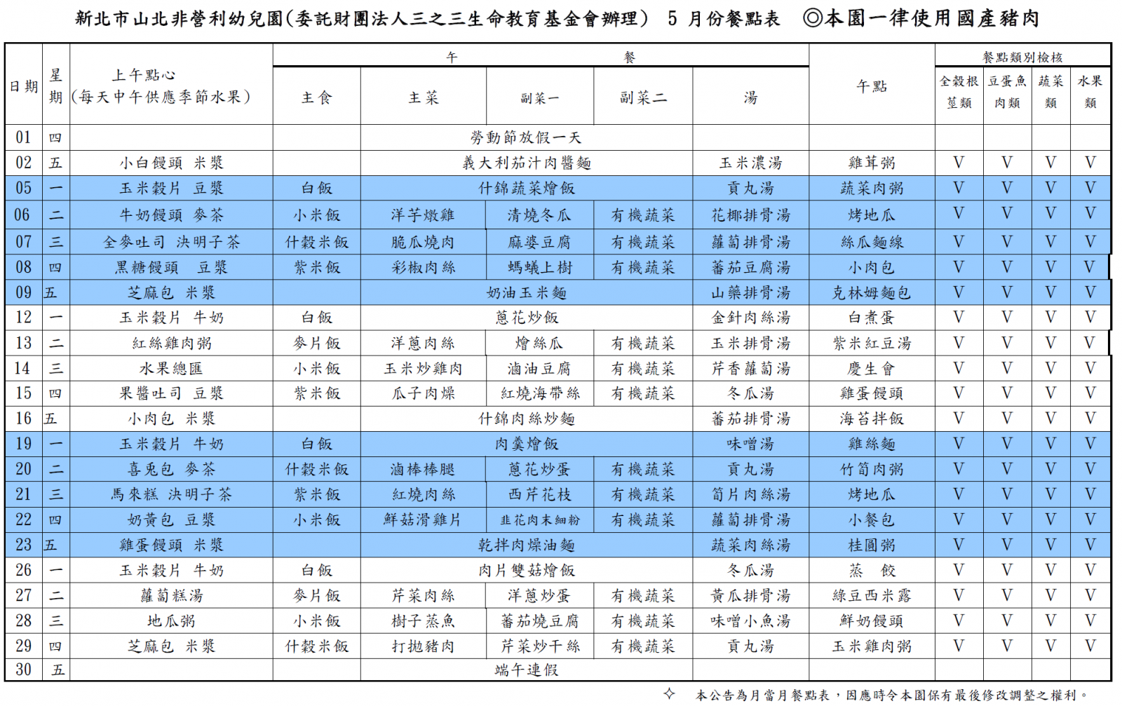 113學年度第二學期 五月份菜單
