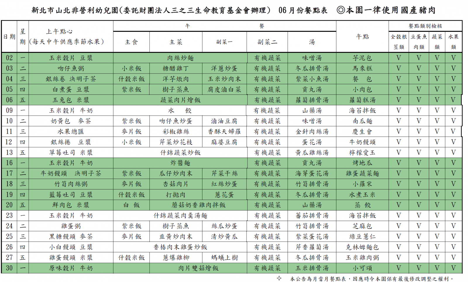 113學年度第二學期 六月份菜單