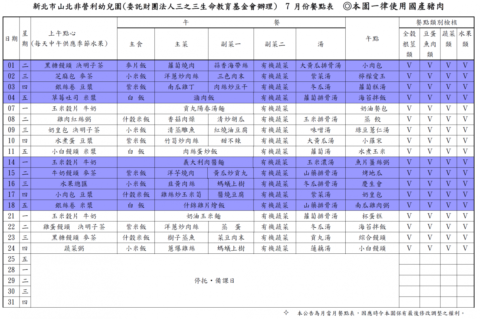 112學年度第二學期 七月份菜單