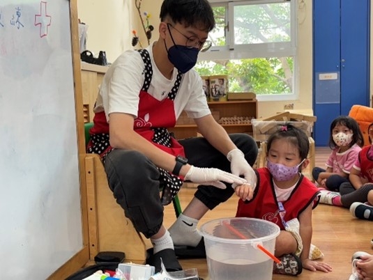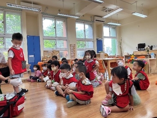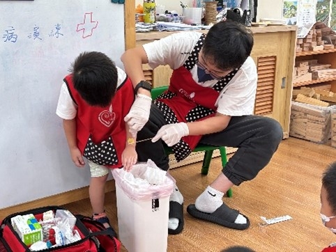 老師演示了一般外傷、撞傷、燙傷三種情況,讓孩子能認識遇到緊急傷病事件時應該如何應對,認識後續處理的方法。