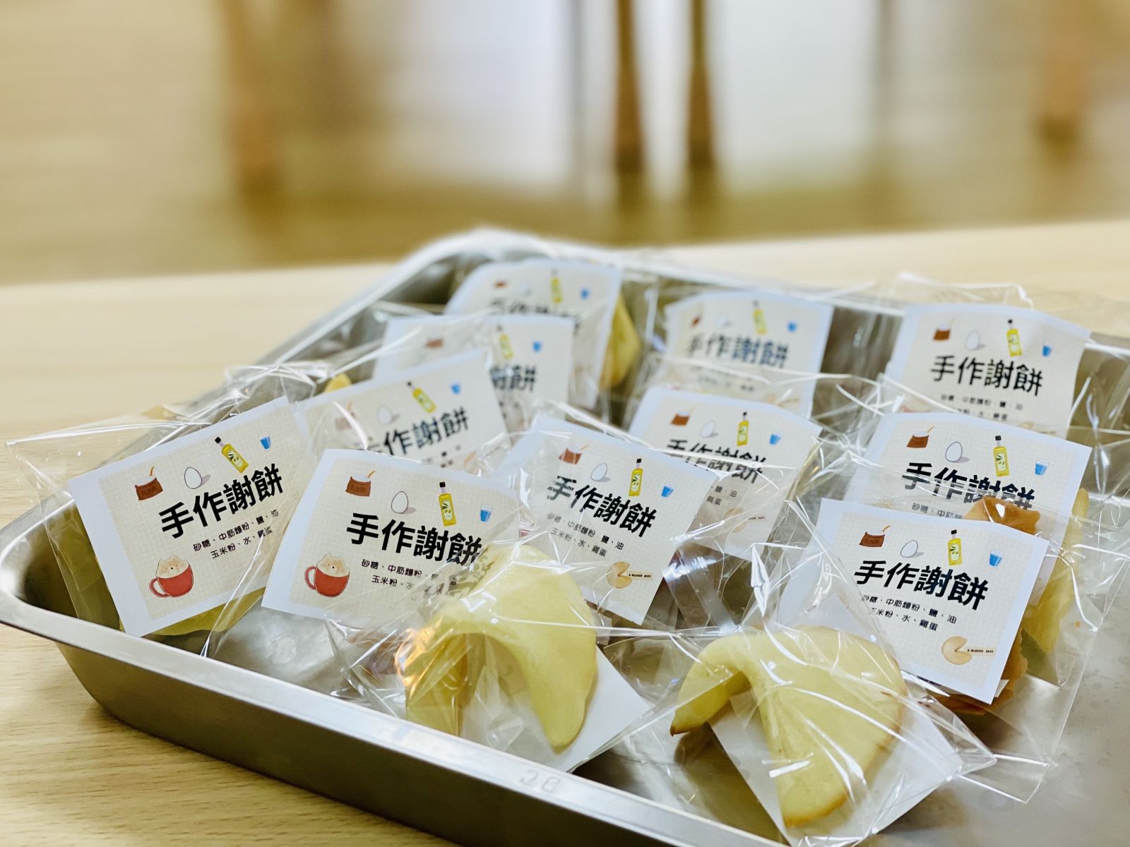 5.出爐後先把餅乾翻面,放上剪好的小字條。