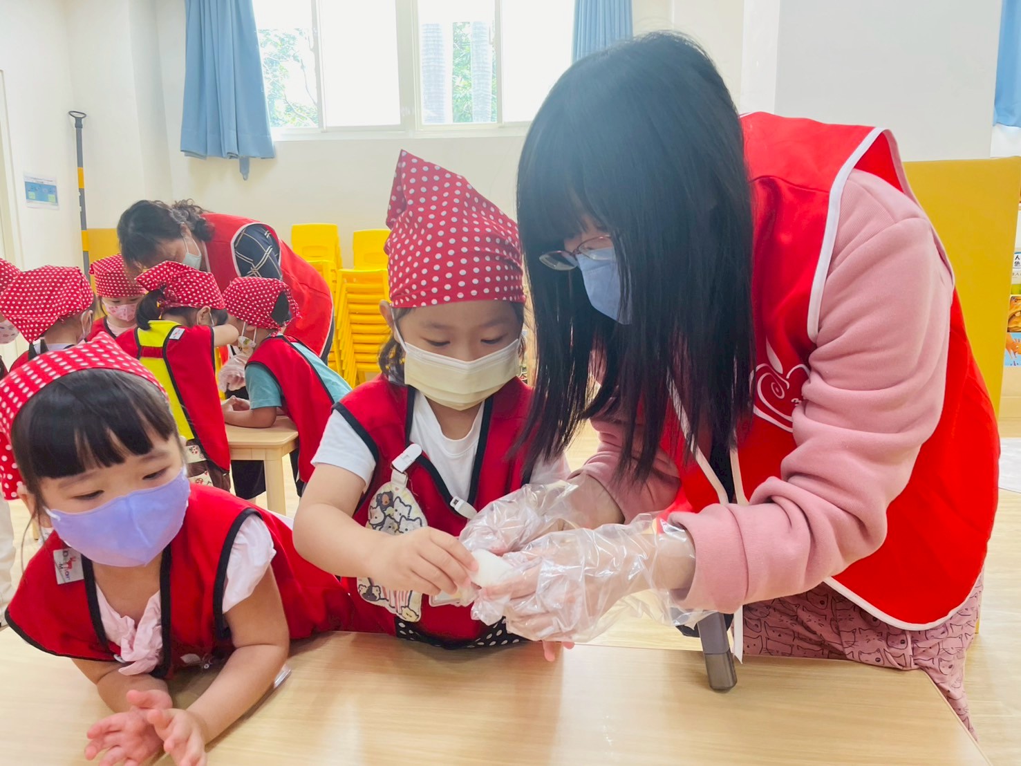 3.低筋麵粉分次加入並攪拌成麵粉糰