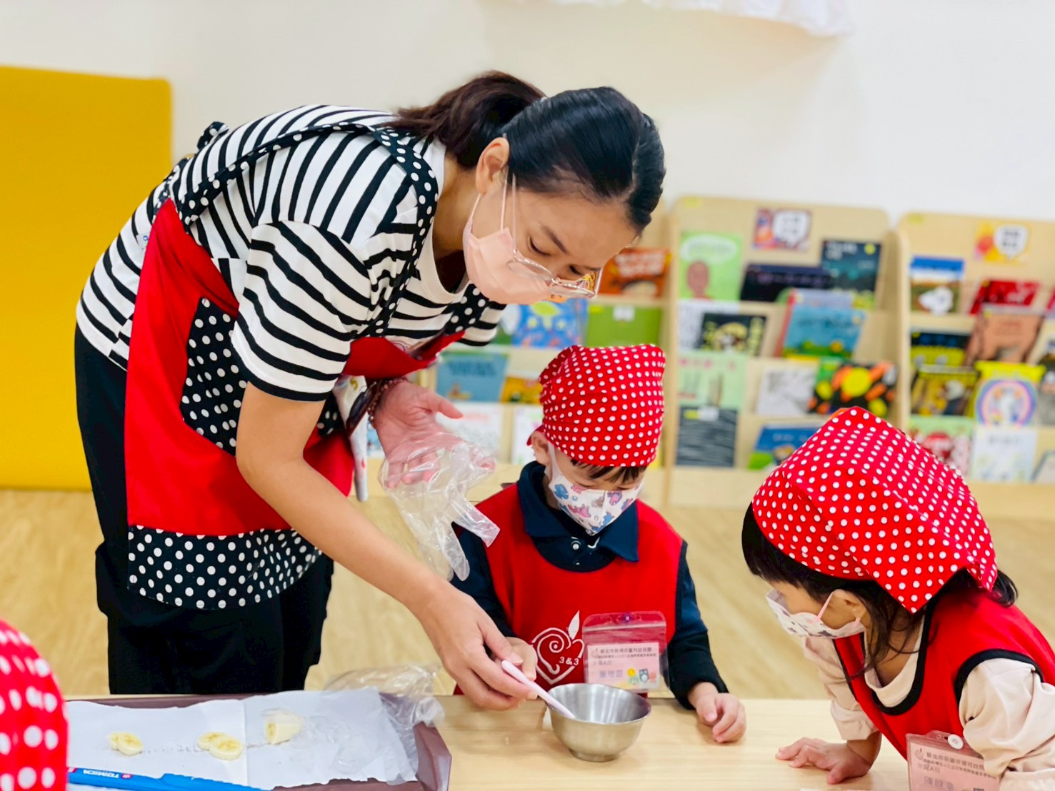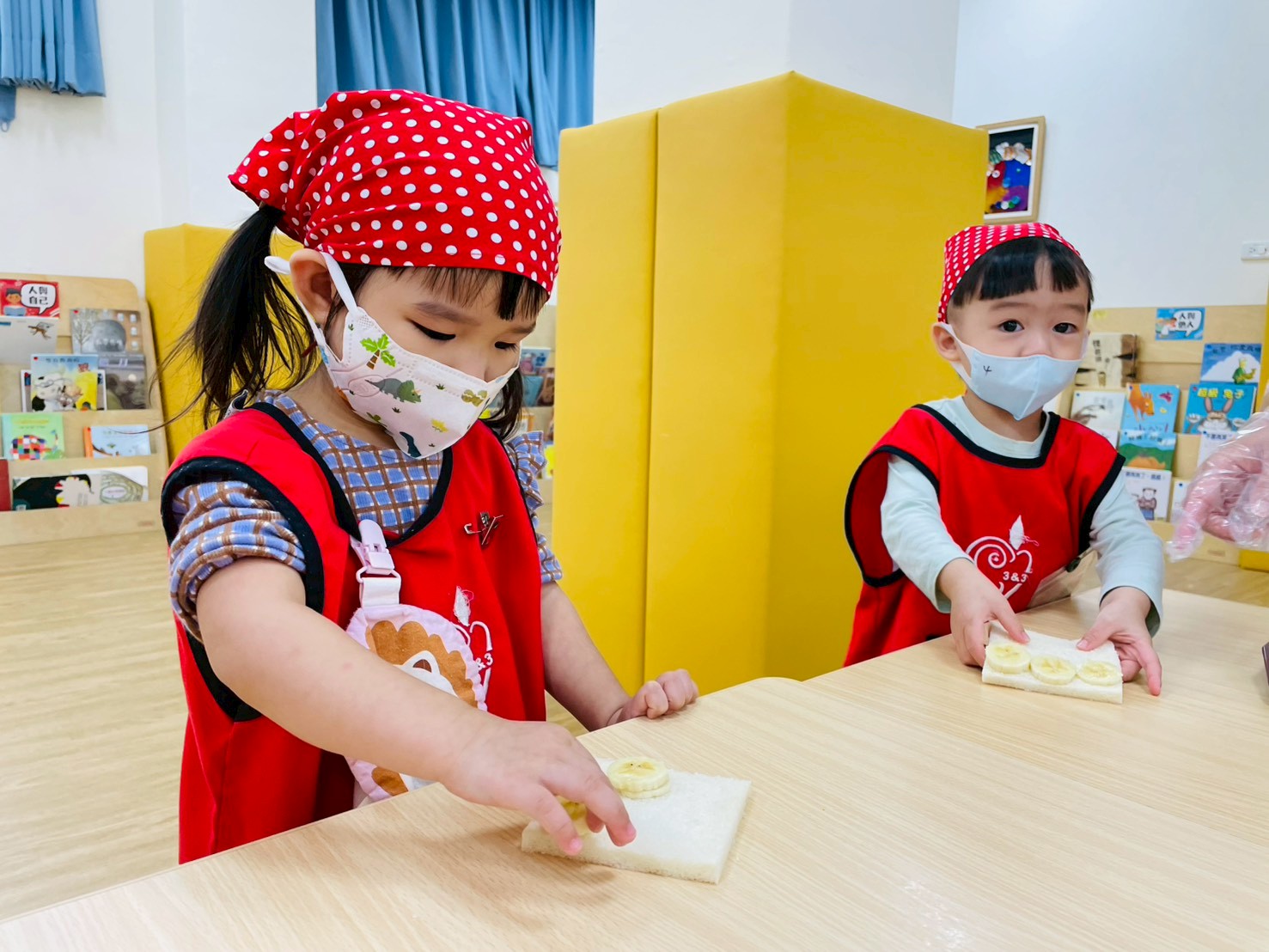1.香蕉切片擺放在白吐司上