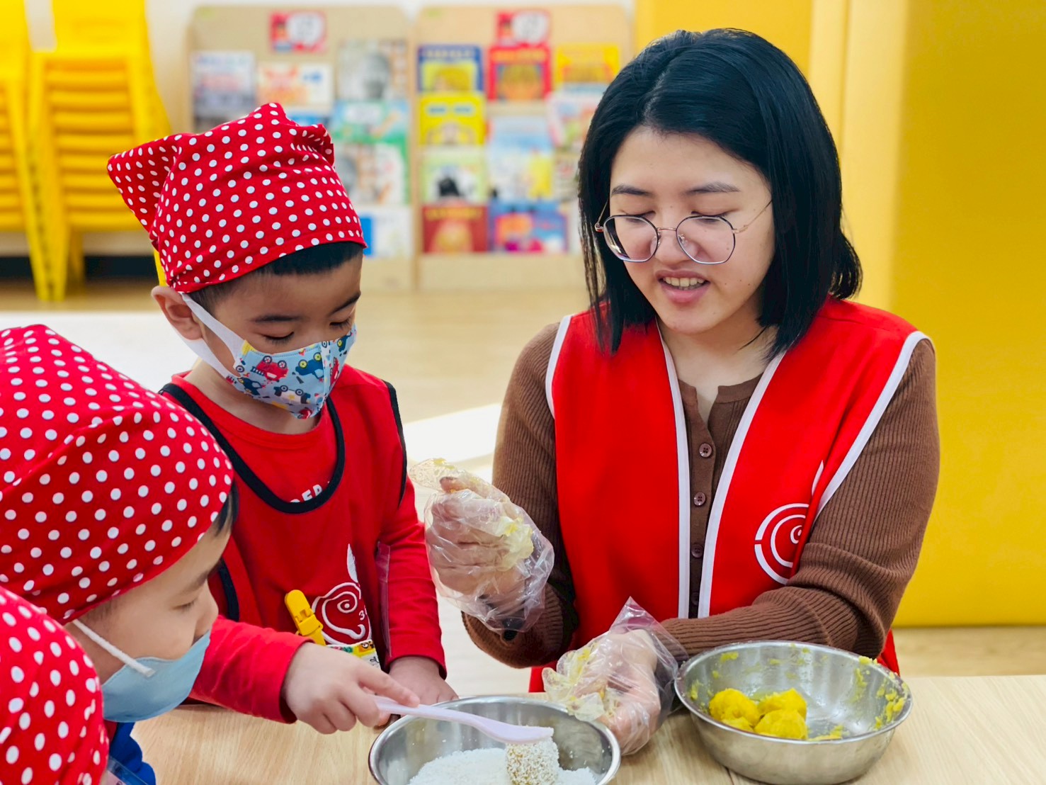 2.地瓜泥揉成球狀並裹上椰子粉