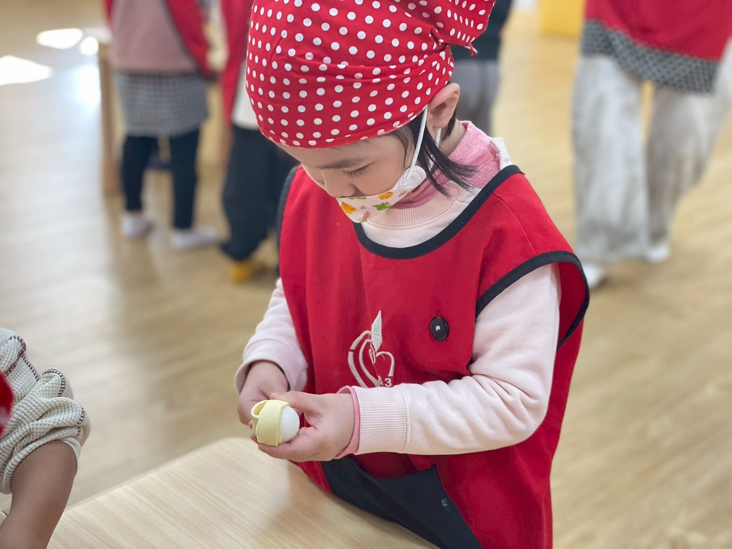 2.使用紙膠帶在雞蛋上貼造型