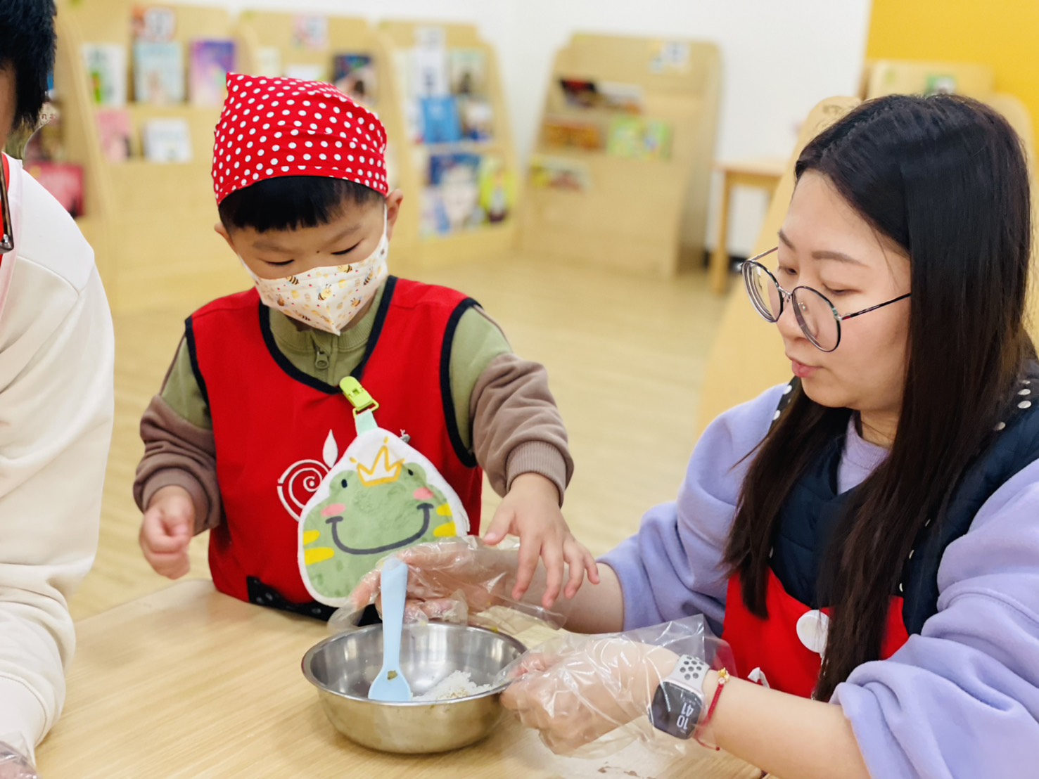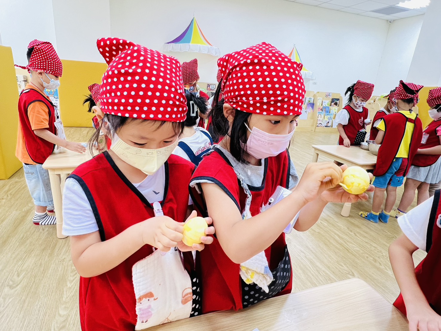 3.將貼好紙膠帶的雞蛋放入食用色素水