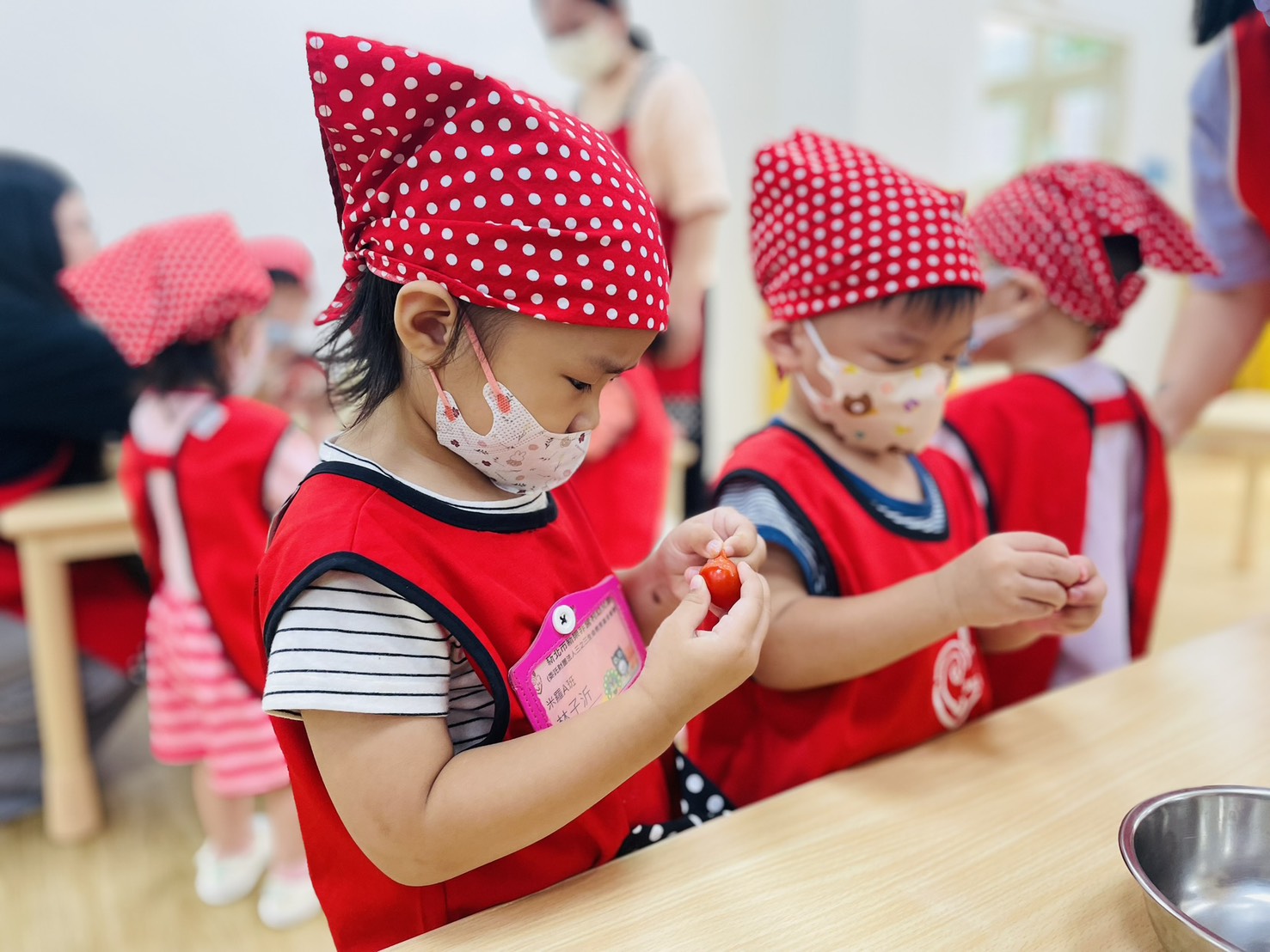1.把小番茄洗乾淨,並用熱水川燙一下