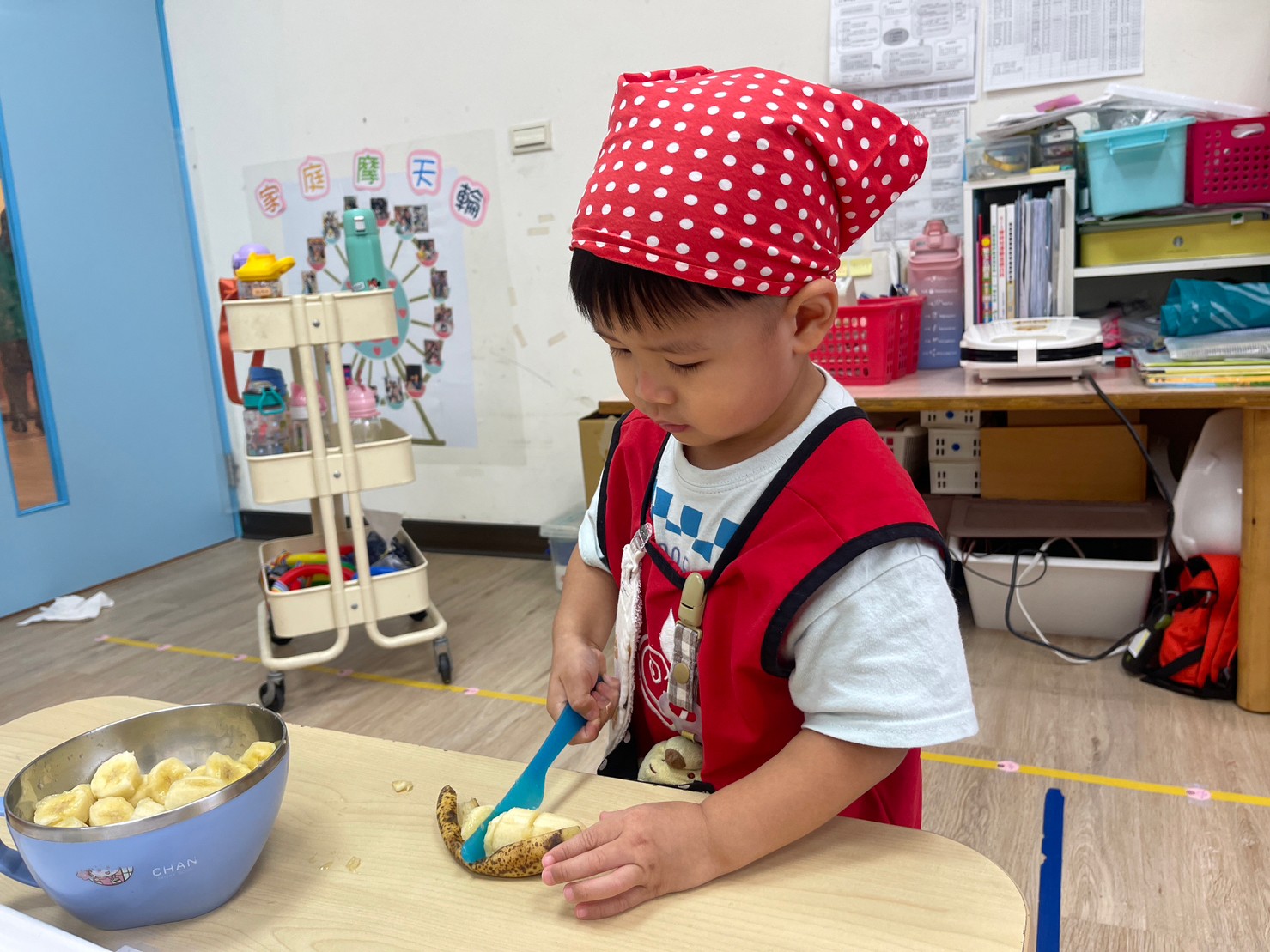 小小米羅班的幸福廚房也開張囉~~~~香香甜甜的香蕉變成好吃的鬆餅~~~哇~~真美味!!