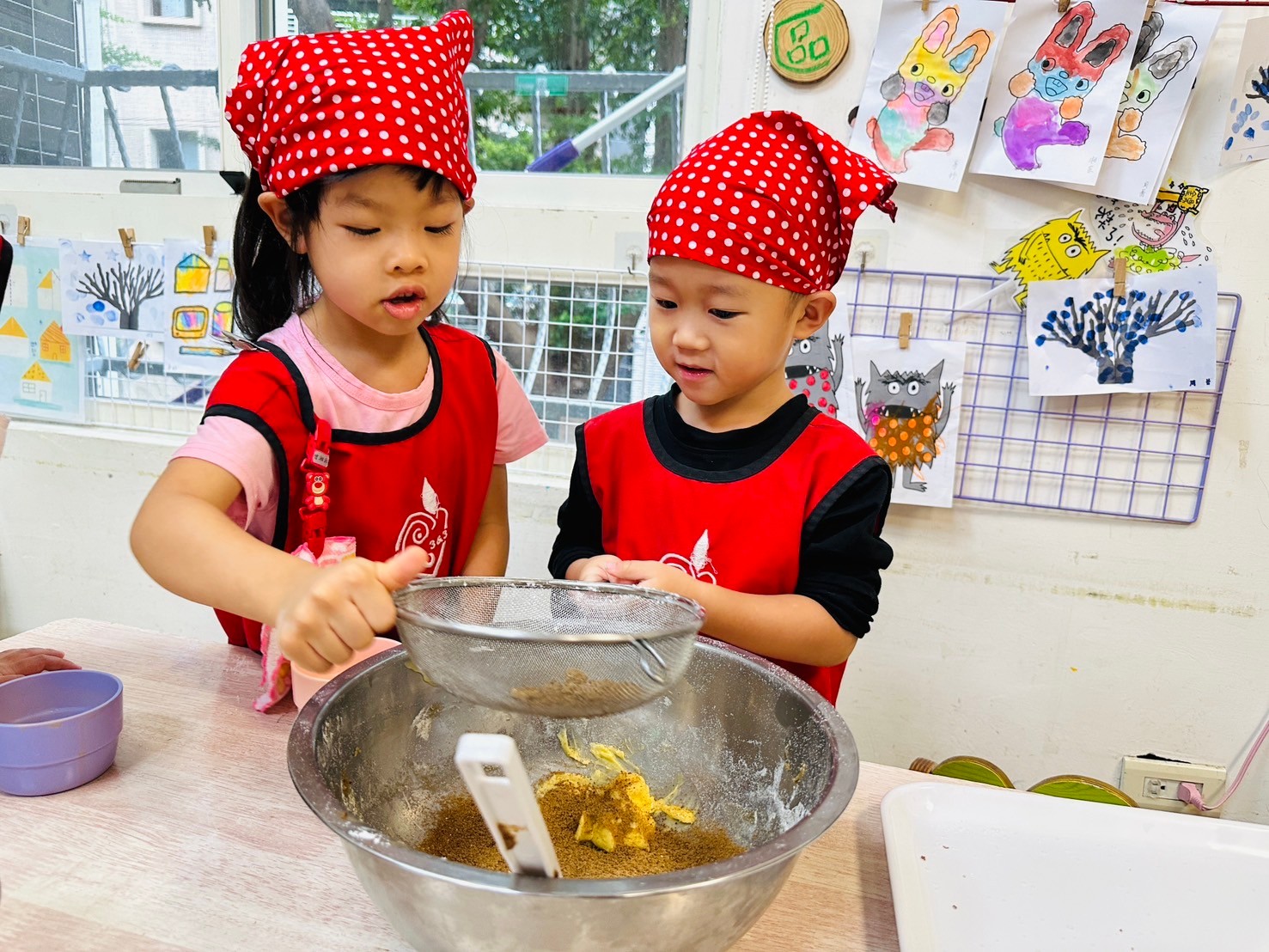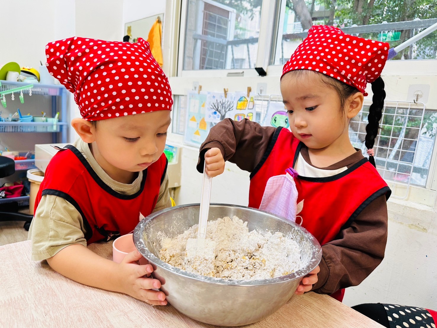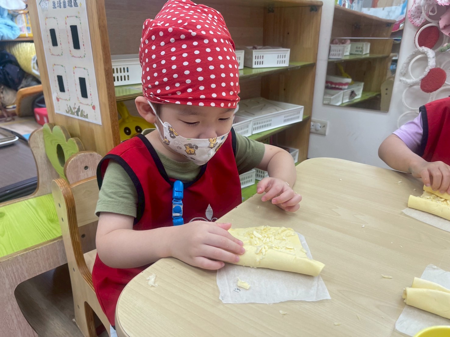 可愛的米羅班孩子,認真專注的把酥皮捲起來,變成美味可口的蝴蝶酥唷~~~