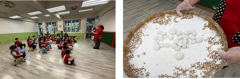 元宵節園內舉辦猜燈謎及分享元宵節由來體驗搖元宵小朋友開心品嚐自己做的元宵。
