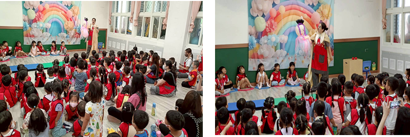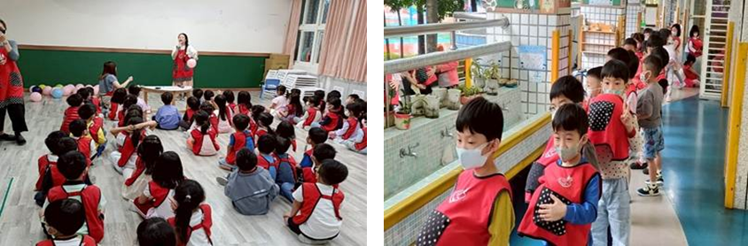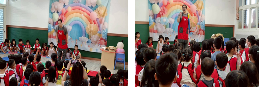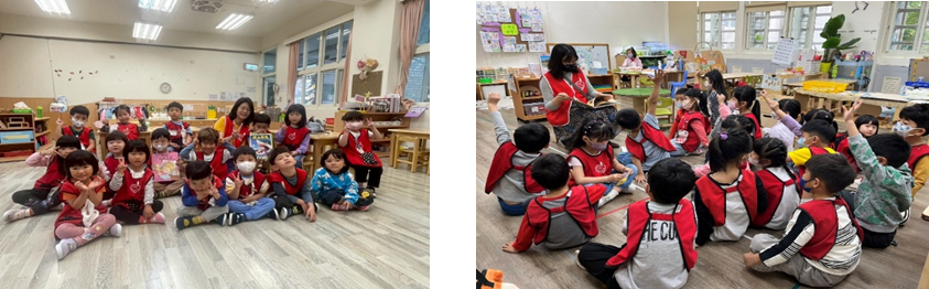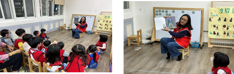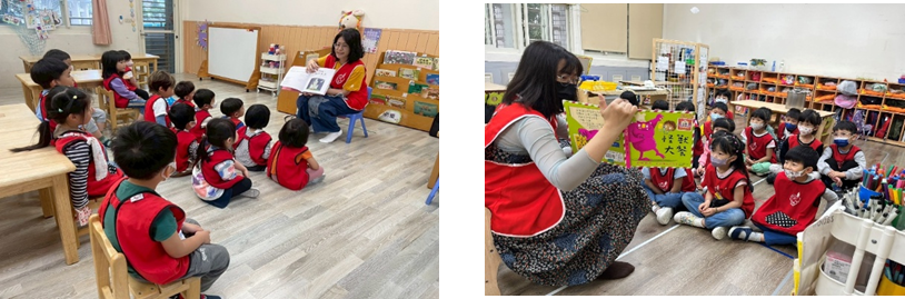每週三早上老師輪流為孩子說故事,搭配每月不同主題,引導孩子想像與表達,培養閱讀興趣與專注力。